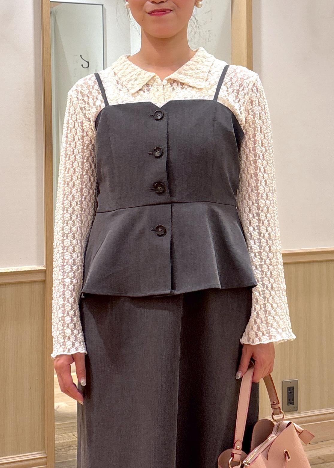 Tシャツ合わせでカジュアルに、ブラウス合わせで綺麗めなスタイリングを楽しめます。