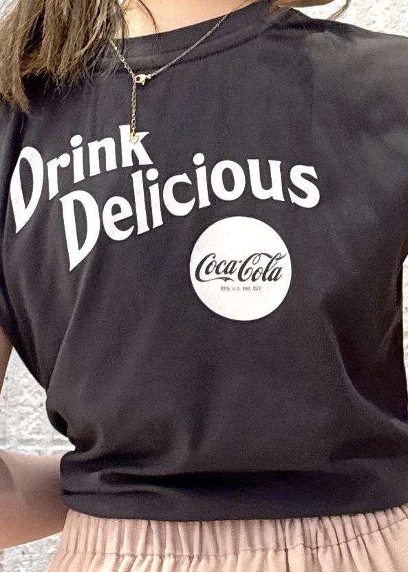 VIS【Coca-Cola】VIS別注ロゴプリントフレンチTシャツチャコール / F¥3,850レビューフレンチスリーブTシャツなので二の腕の1番大きく見える部分を隠しながら接触冷感付きなのでさらっと着れます!