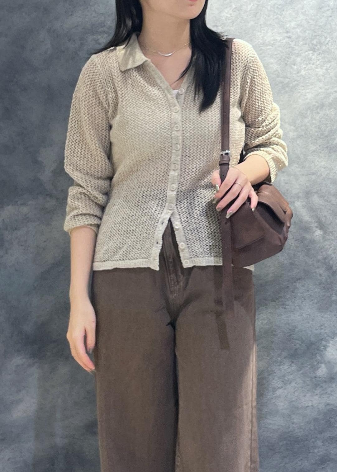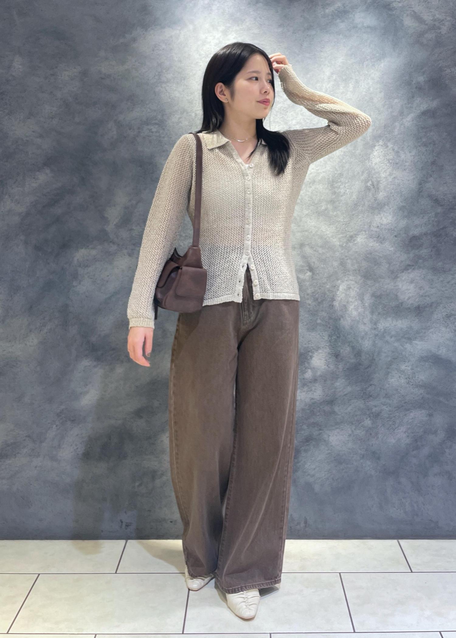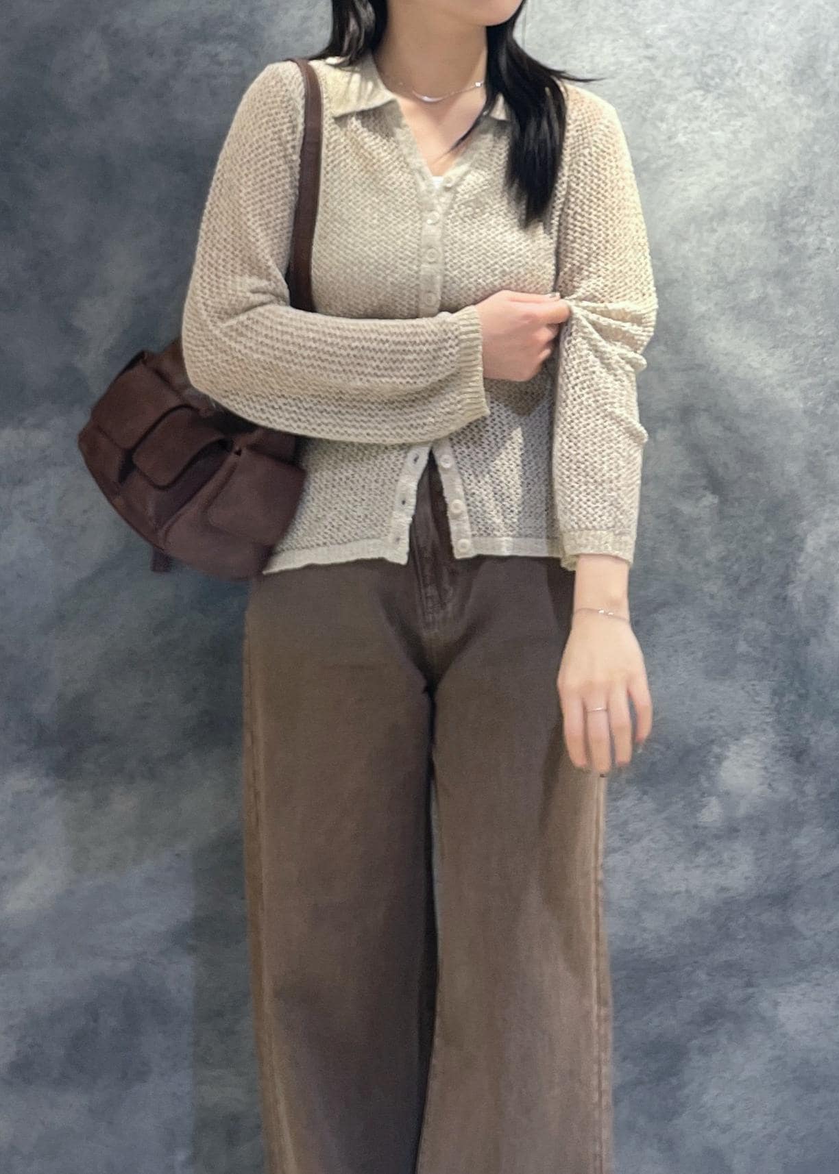 VIS【WEB/一部店舗限定】配色ラメポロ襟カーディガン/美シルエットベージュ / F¥2,745レビュー身長160cmで腰骨が描くれる丈感。