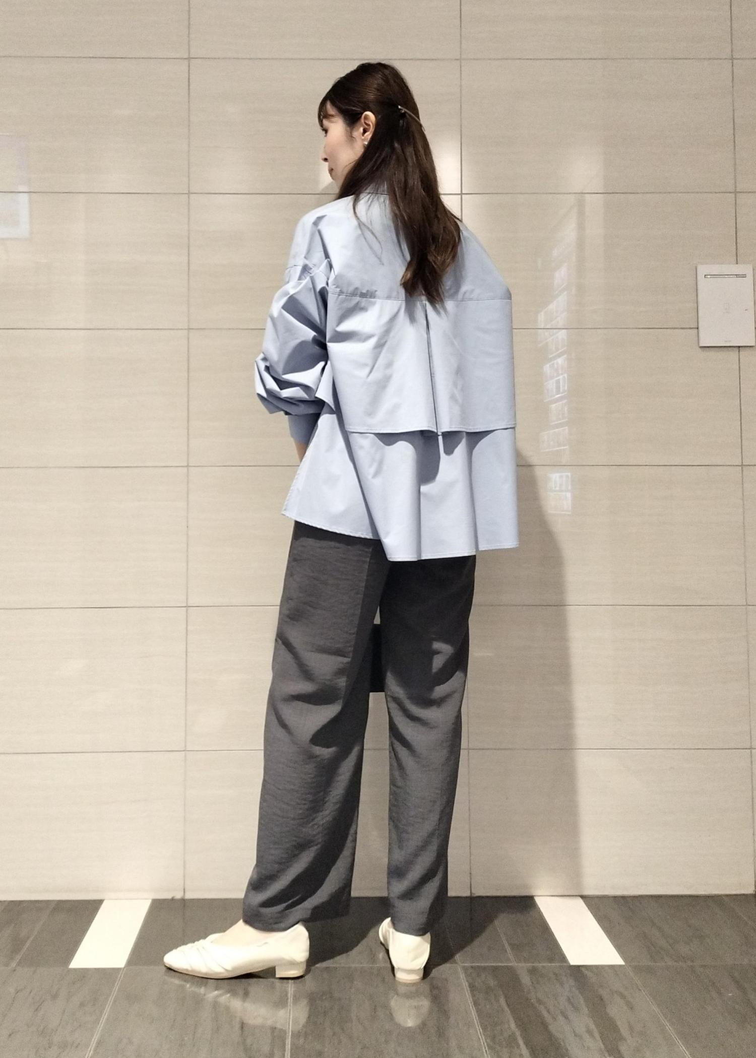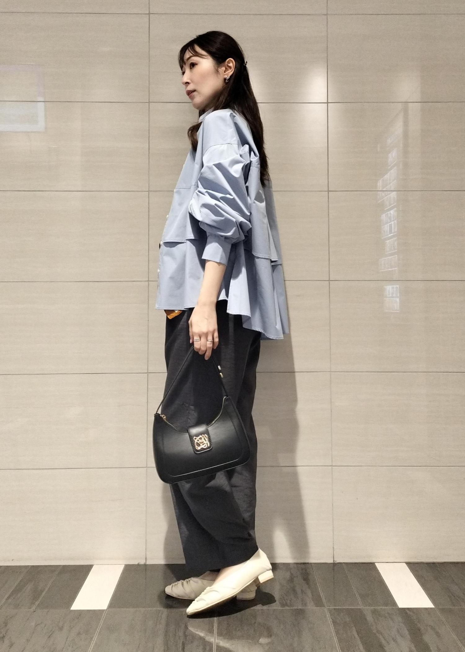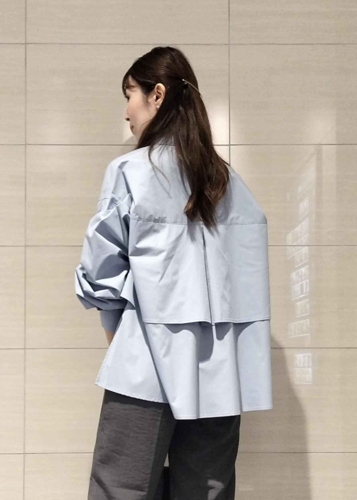 VIS裾ティアードオーバーシャツ/UVケア・イージーケアサックス / F¥3,557レビューオーバーなサイズ感でデザイン性のあるブラウスはカジュアルにもキレイめにも着やすいです♪UVケアやマシンウォッシャブル素材がまだまだ暑い季節にピッタリなブラウス♪