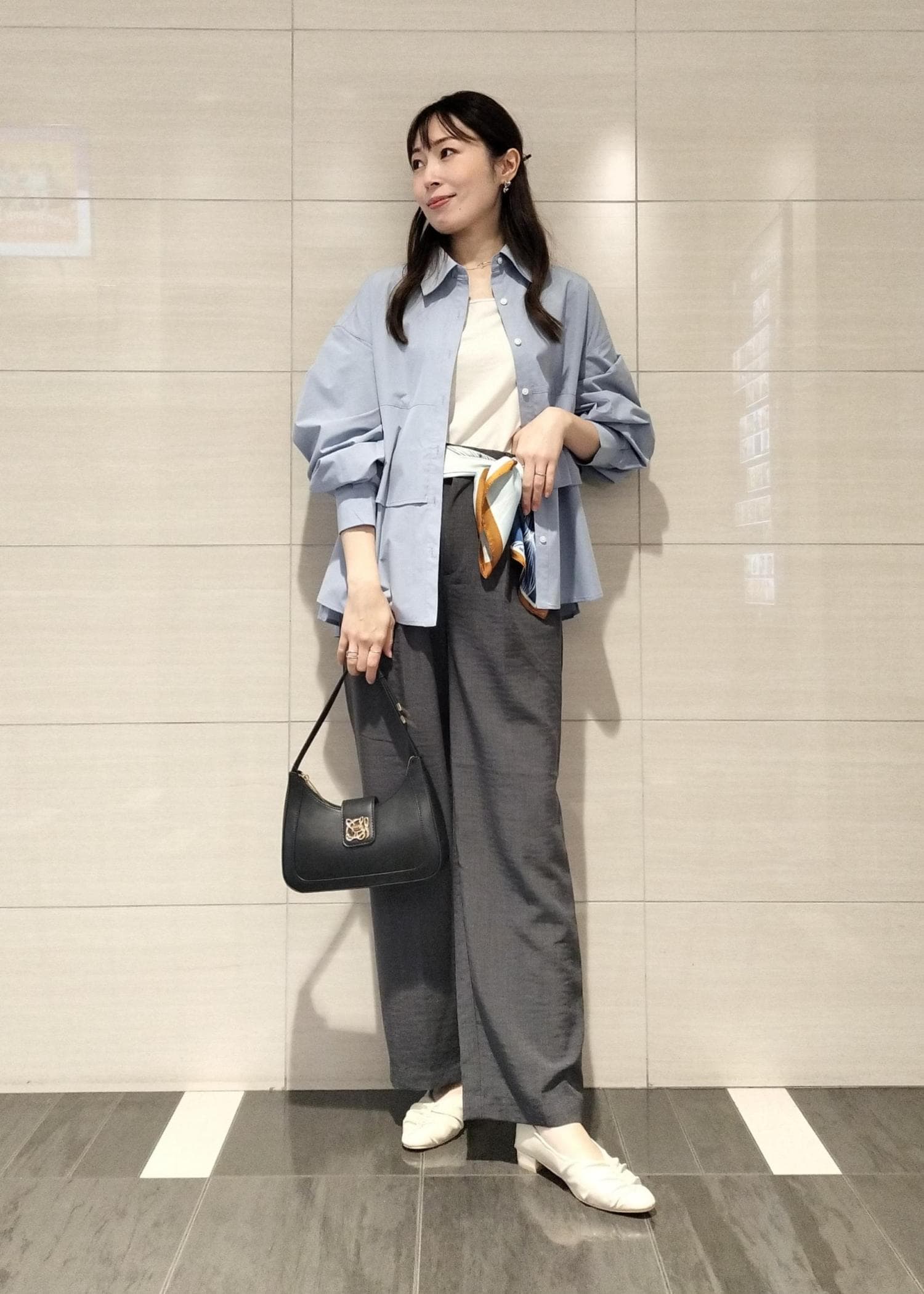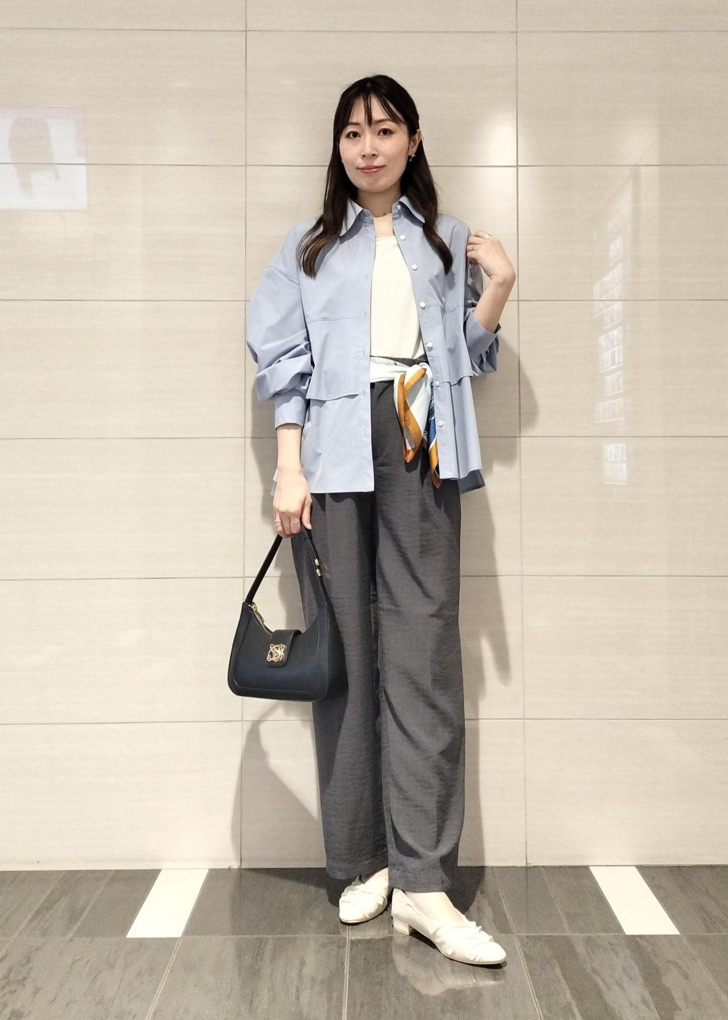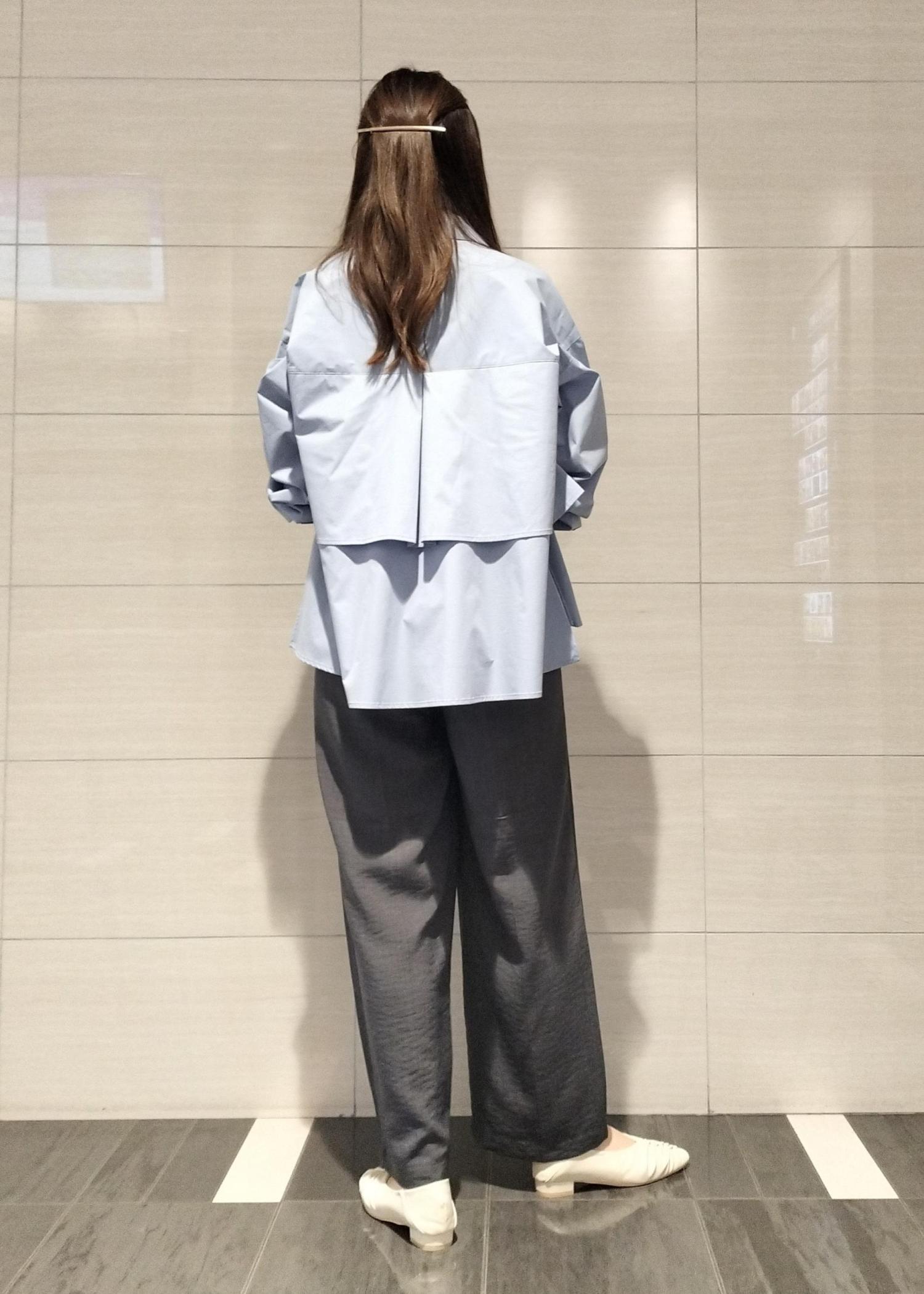VIS裾ティアードオーバーシャツ/UVケア・イージーケアサックス / F¥3,557レビューオーバーなサイズ感でデザイン性のあるブラウスはカジュアルにもキレイめにも着やすいです♪UVケアやマシンウォッシャブル素材がまだまだ暑い季節にピッタリなブラウス♪