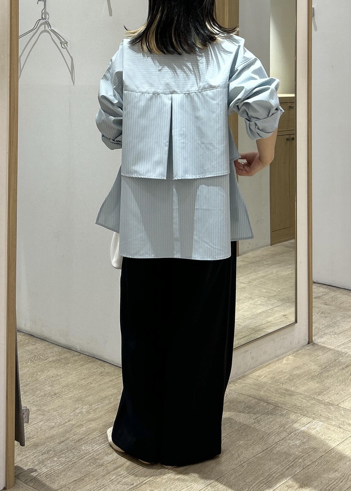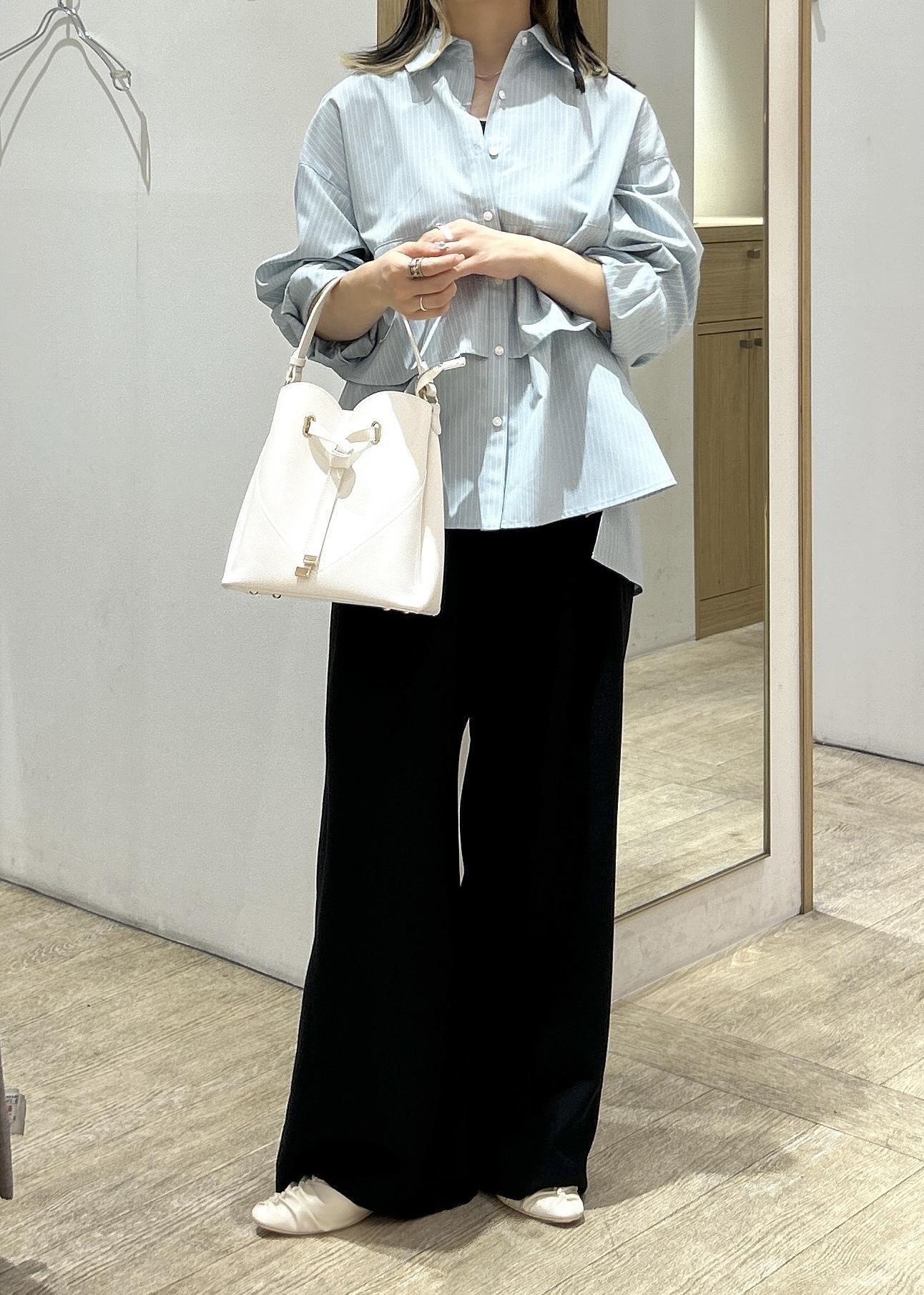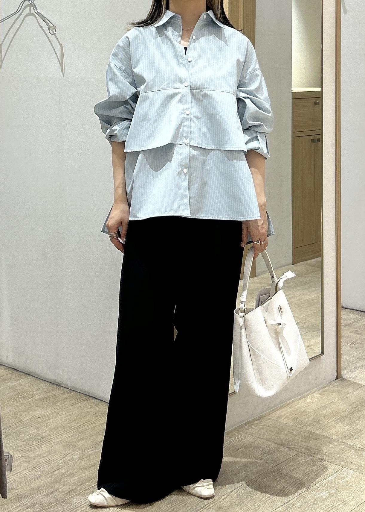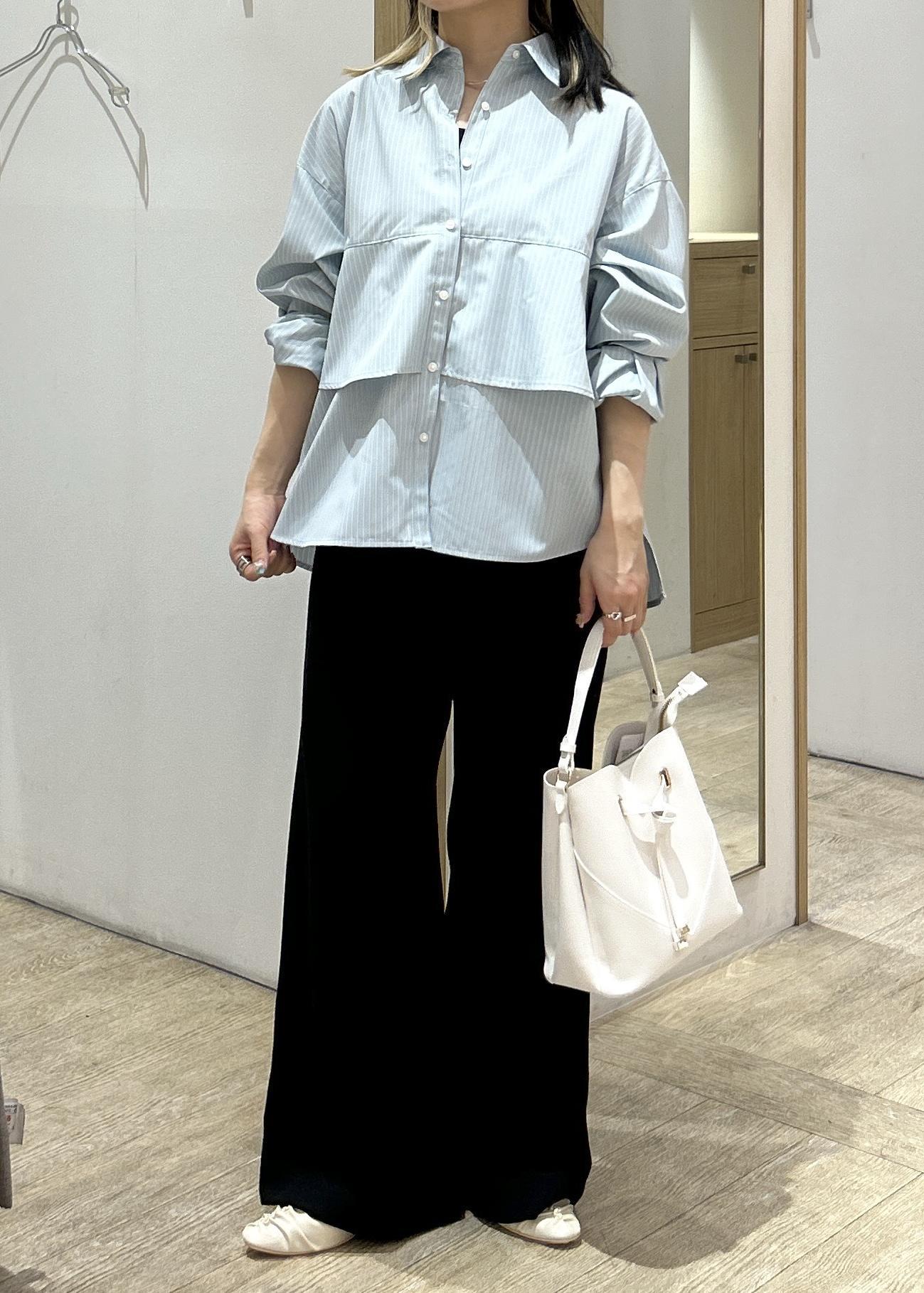 ワイドパンツであわせるときは前を開けてスッキリ羽織るとバランスよく着られます!