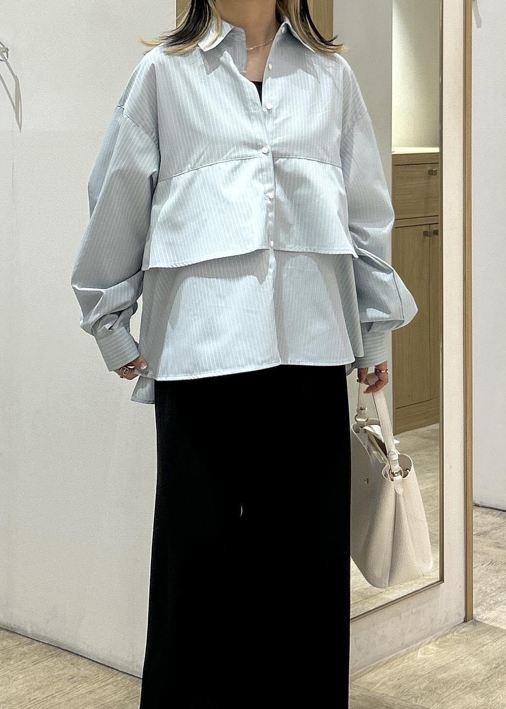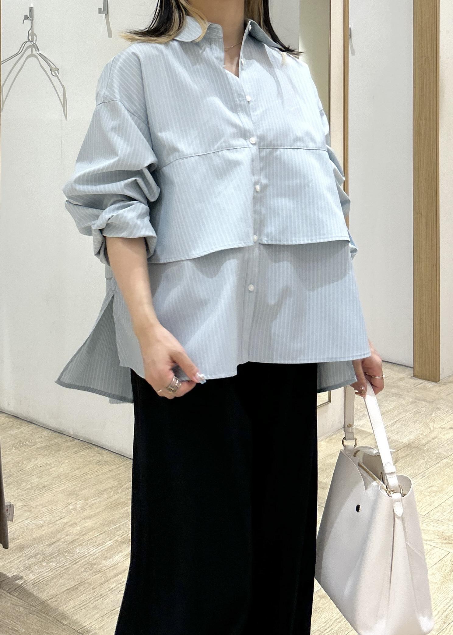 VIS裾ティアードオーバーシャツ/UVケア・イージーケアライトグリーン / F¥3,557レビュー157cmでお尻がすっぽり隠れる着丈でした!