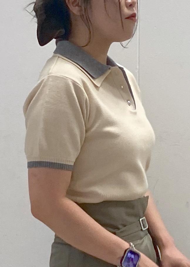 私は骨格ストレートなので、ボタンを1〜2個開けて着るとスッキリと見えやすいです。 -