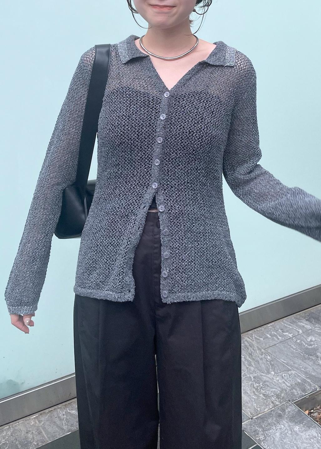 VIS【WEB/一部店舗限定】配色ラメポロ襟カーディガン/美シルエットグレー / F¥2,745レビューヘルシーな肌見せが叶う大人可愛いメッシュカーディガン♡程よくフィットするサイズ感と首元のV開きで特に骨ストさんは得意なデザイン◎敏感肌ですがチクチク感は無かったです!