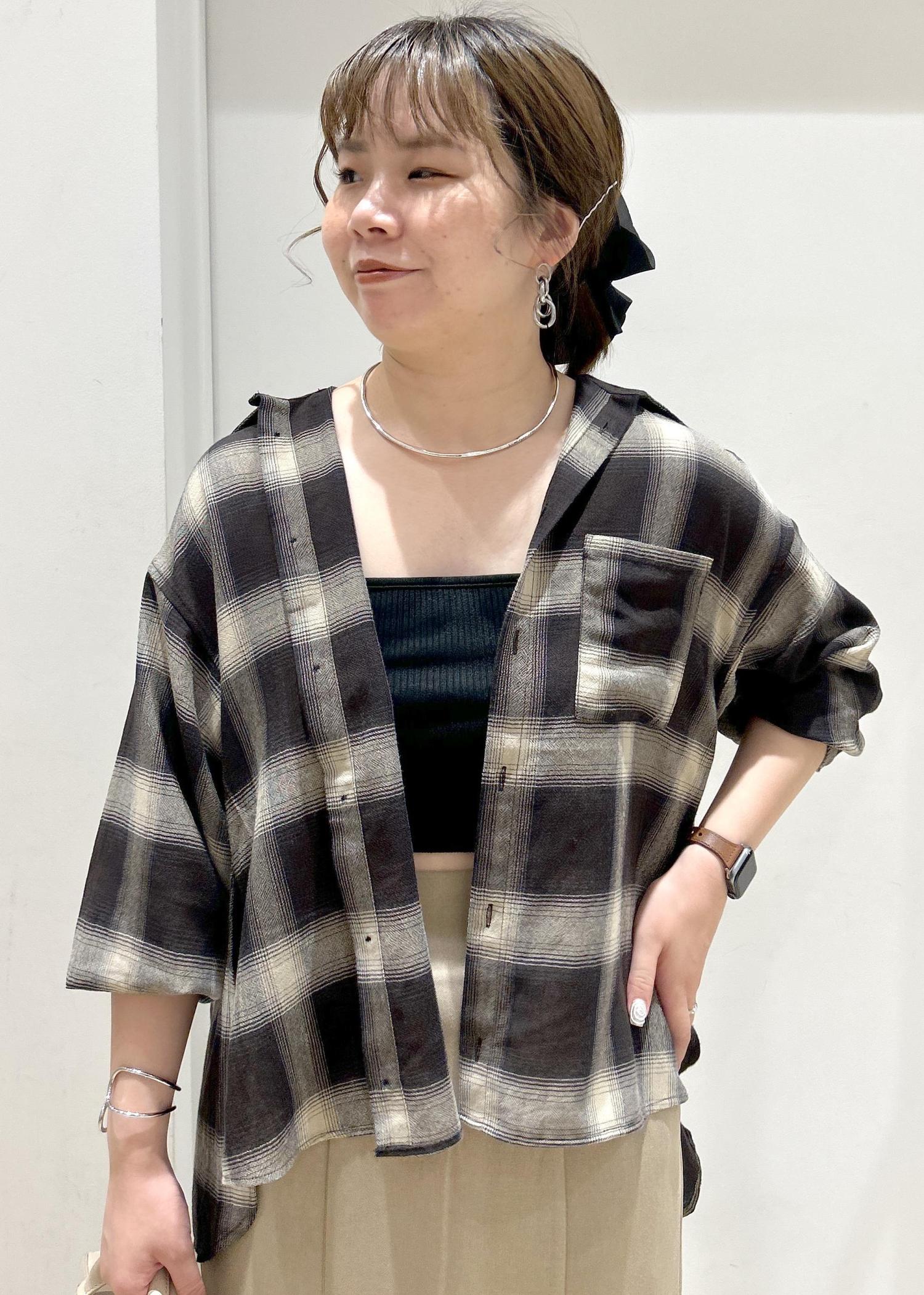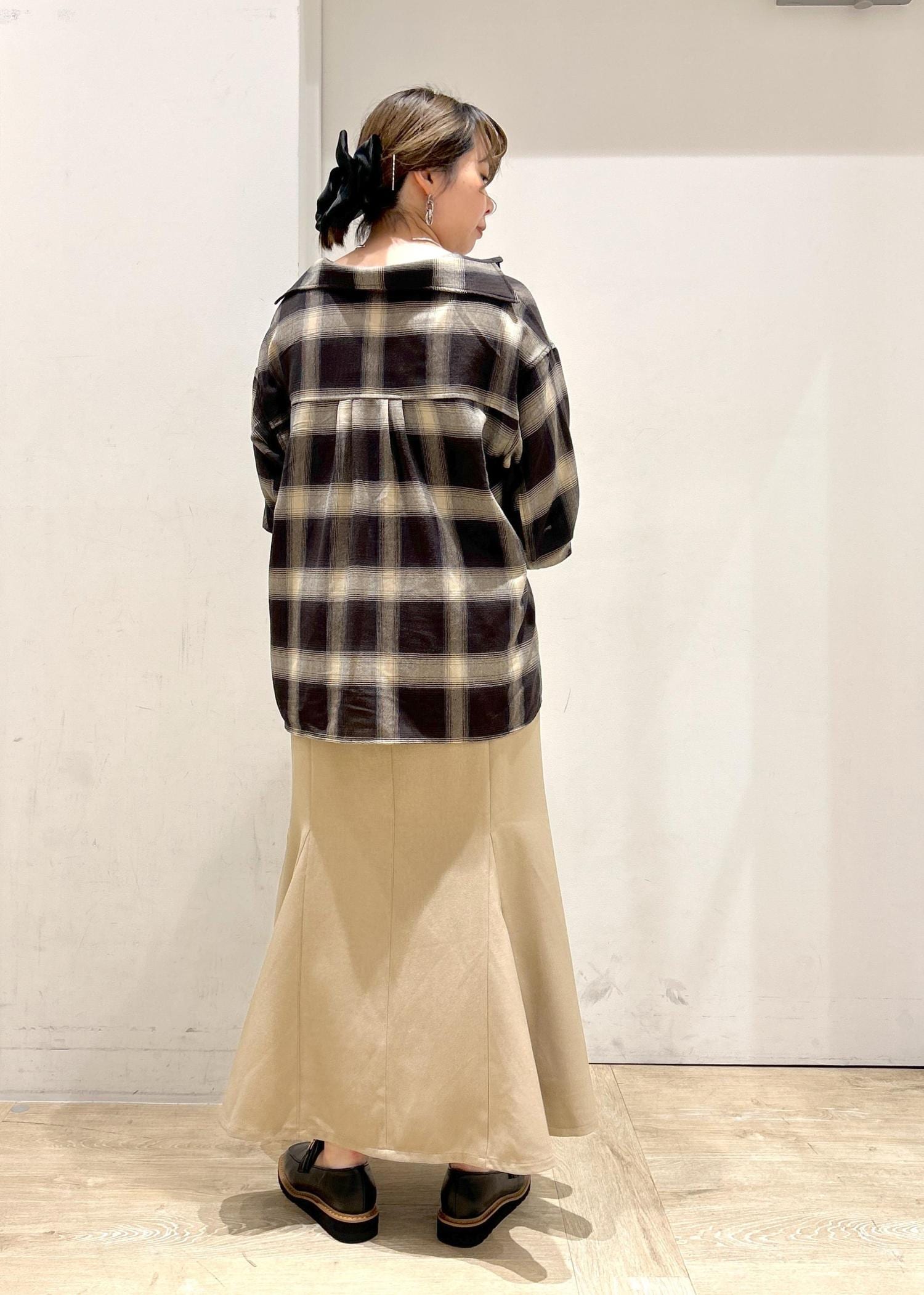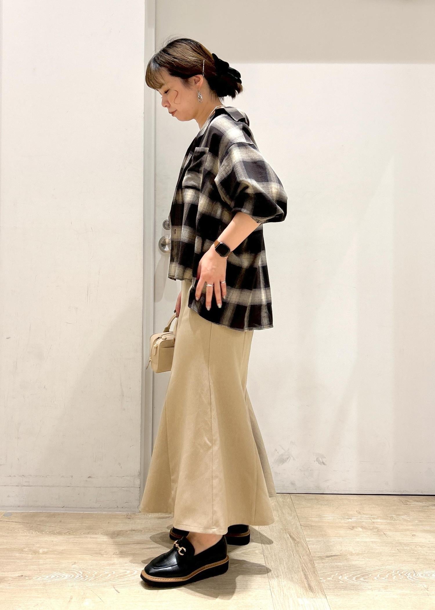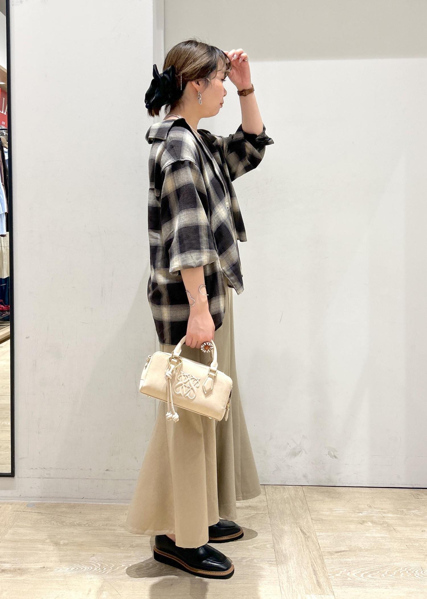オーバーサイズのチェックシャツ合わせで少しカジュアルに