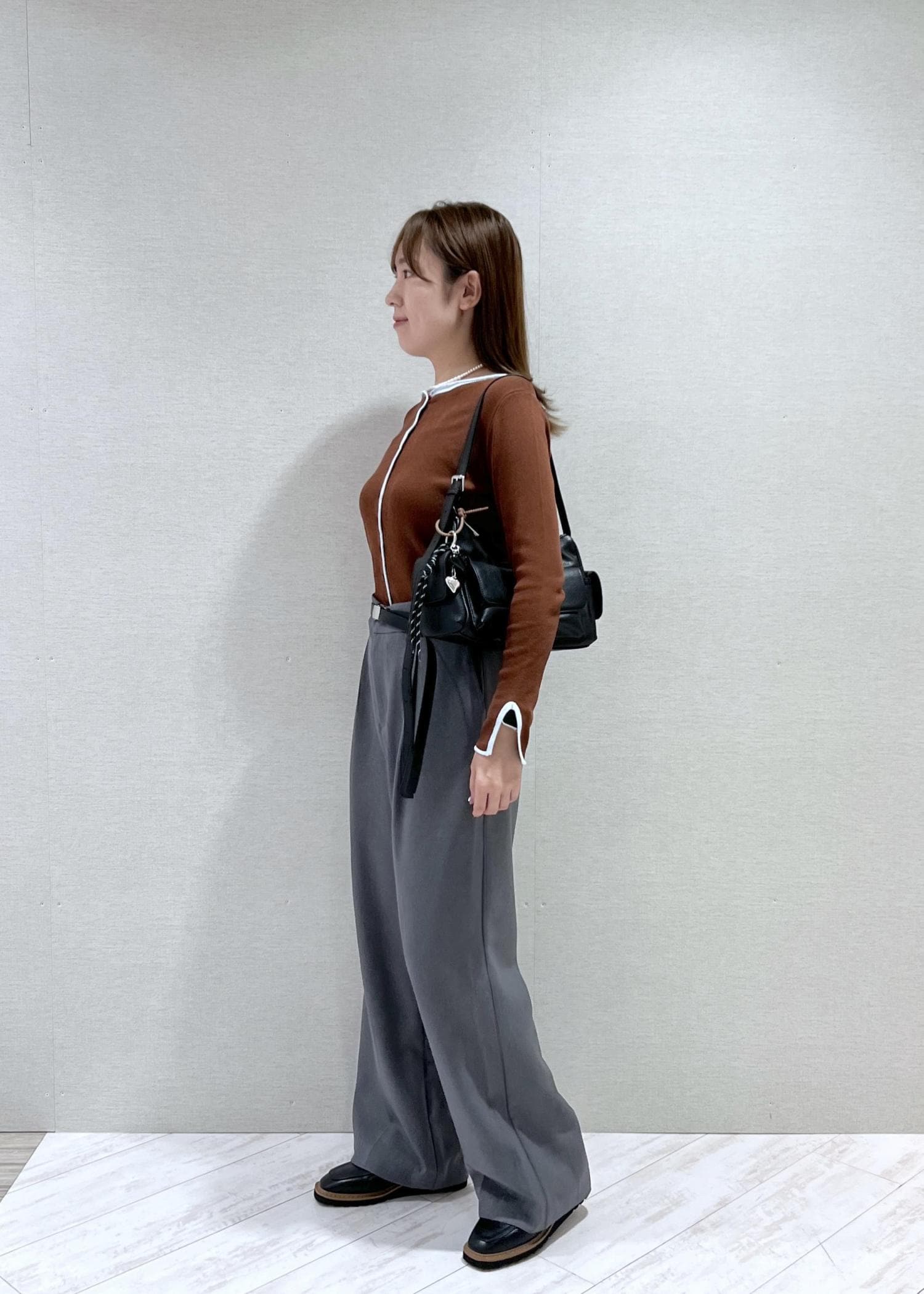 VIS【美easy】ウーリッシュワンタックワイドパンツ【セットアップ対応/洗える】グレー / L¥6,589レビュー身長164cm、ゆったりめに履きたくLサイズを着用。靴のヒールは約4cmで、床に付かないくらいの丈感で履けました!
