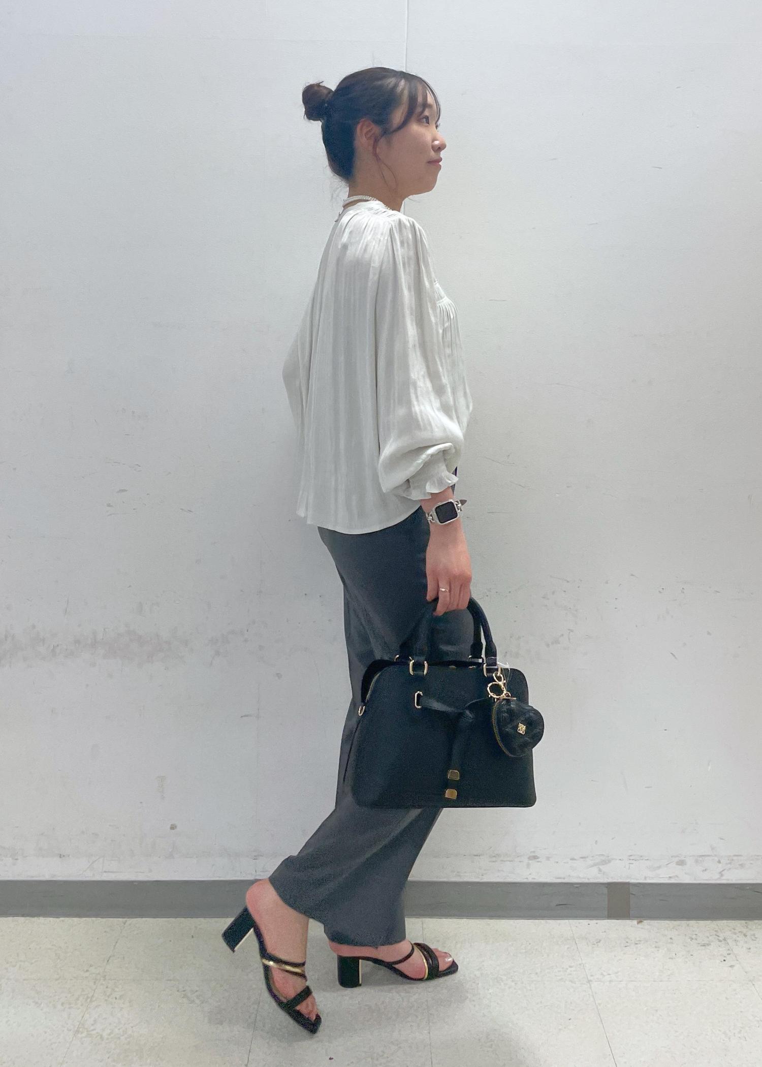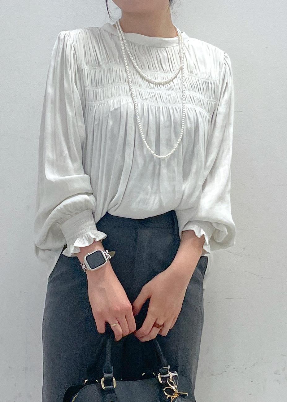 手首にはゴムが入っているので、落ちてこずお仕事用などにもストレスなく使っていただけるブラウスです。