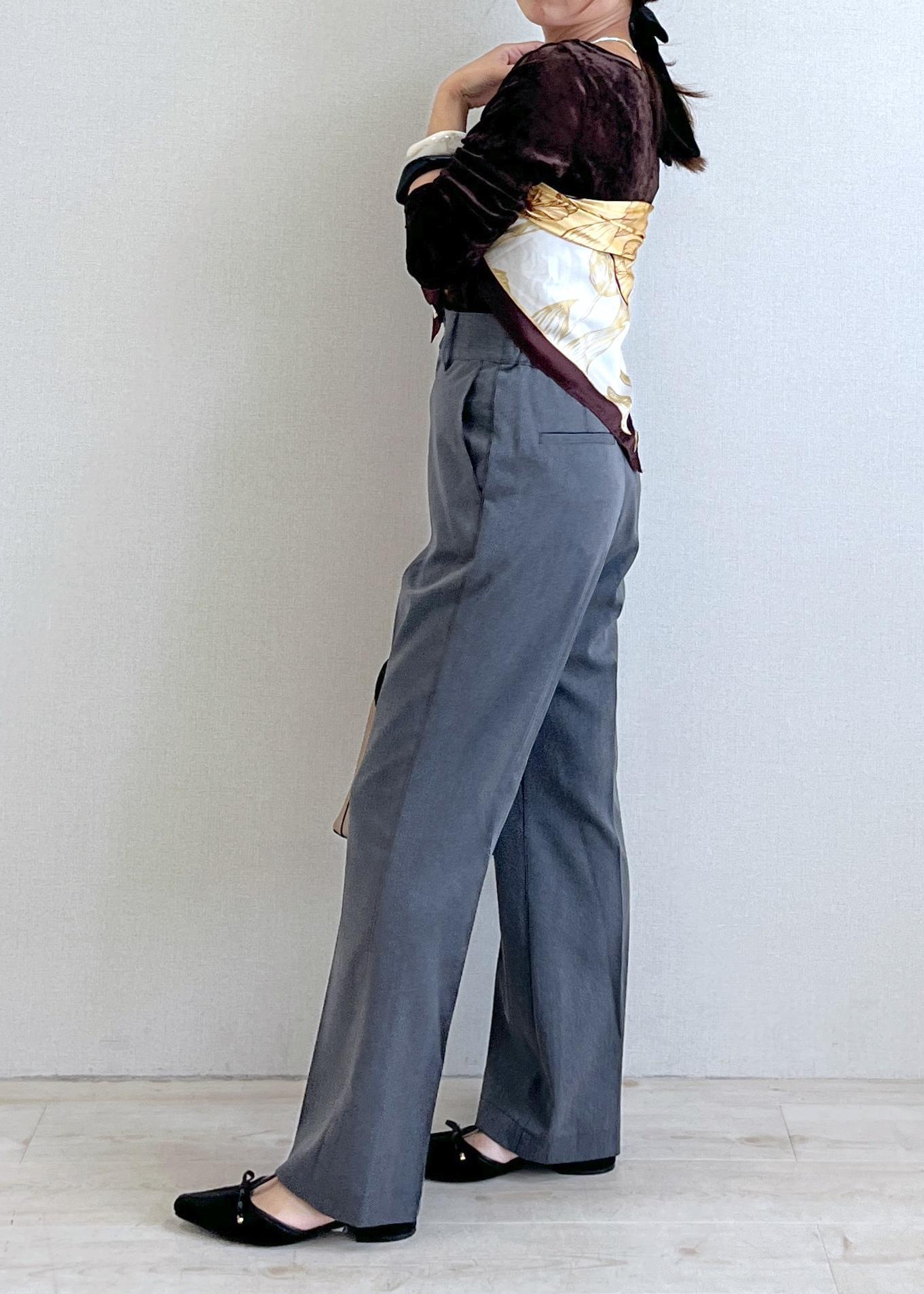 VISフレアーリラックススラックスチャコール / S¥4,150レビュー152cmでSサイズ着用し、高めのウエストで着用してペタンコ靴でも床につかない丈でした。とってもシルエットがキレイ。ややフレアなデザインが脚長効果◎程よく薄手の素材感なので、今からすぐにお召しいただけます!キレイめにもカジュアルにも使えそうなパンツ。程よくフィットしてくれ、ストレッチも効いているので感動の履き心地です。