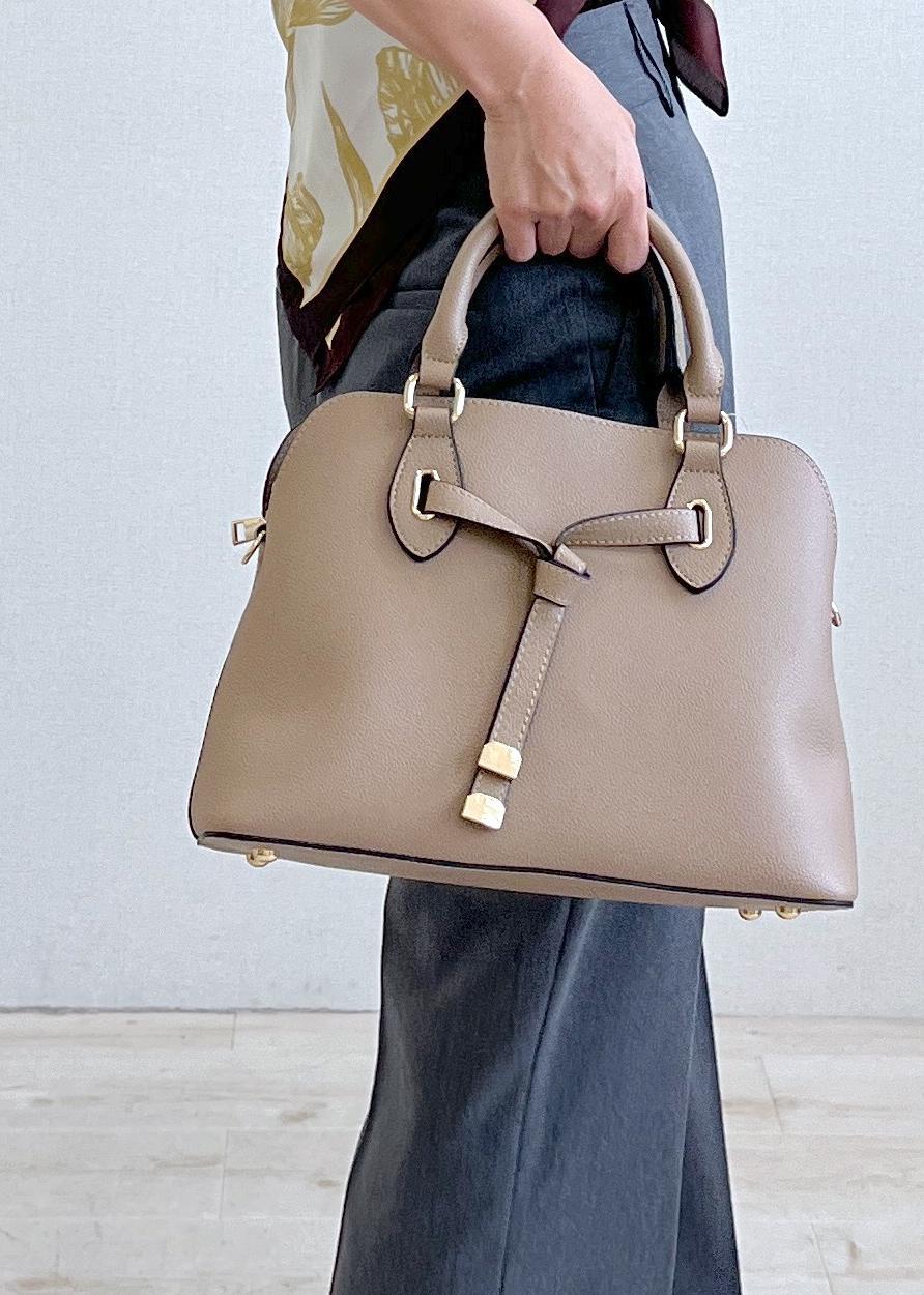 VISフロントタイ ブガッティ型ボストンバッグ/2WAYベージュ系 / F¥7,909レビュー持つだけでコーデが一気に垢抜ける、優秀バッグ。