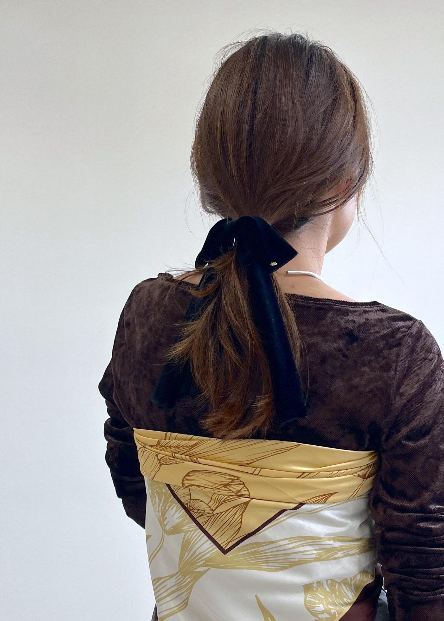 ベロア素材でつけるだけで秋らしいコーディネートに。ヘアアレンジには欠かせないアイテム。ロングの方には是非使っていただきたい。いつものスタイリングが映えます! -