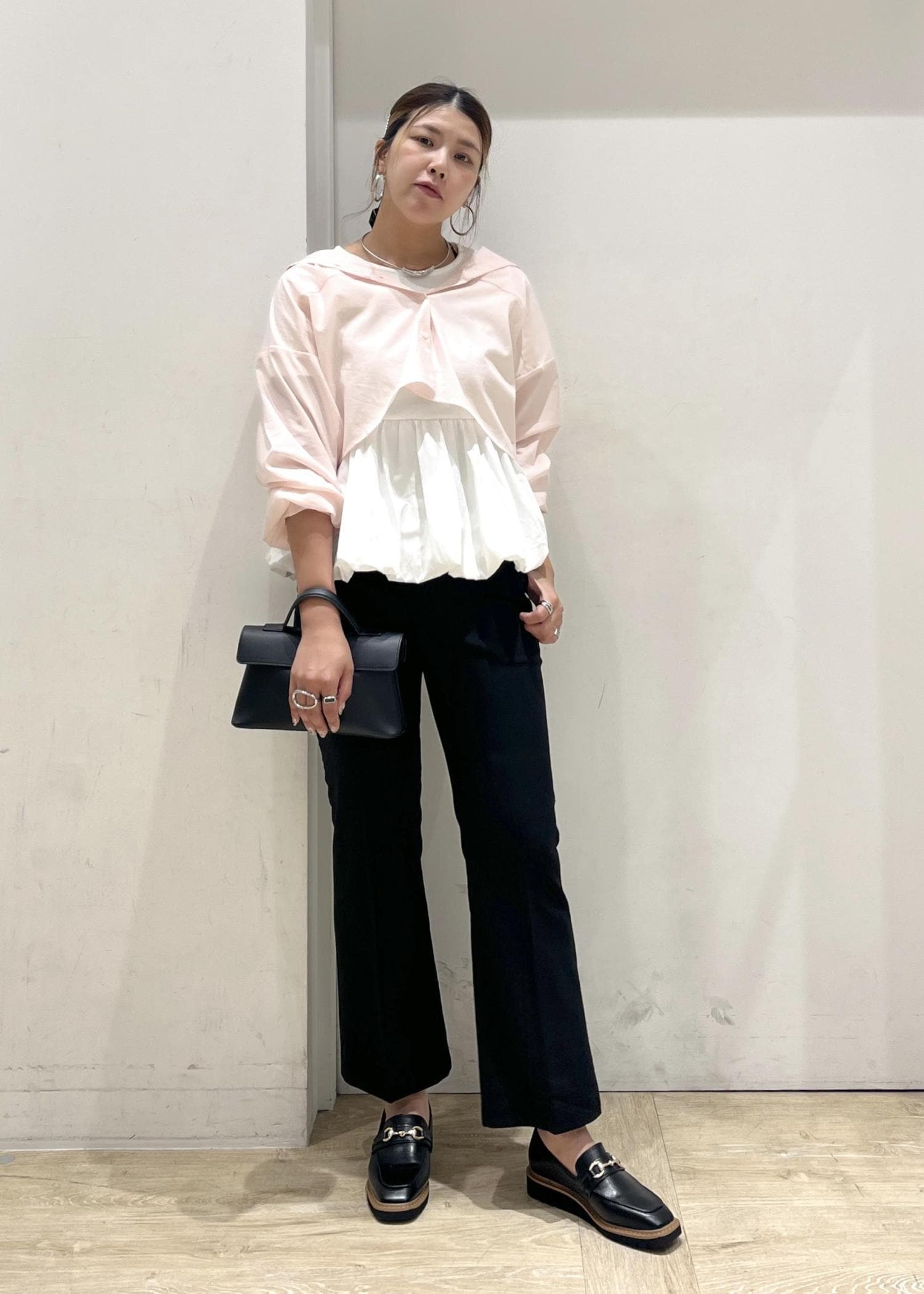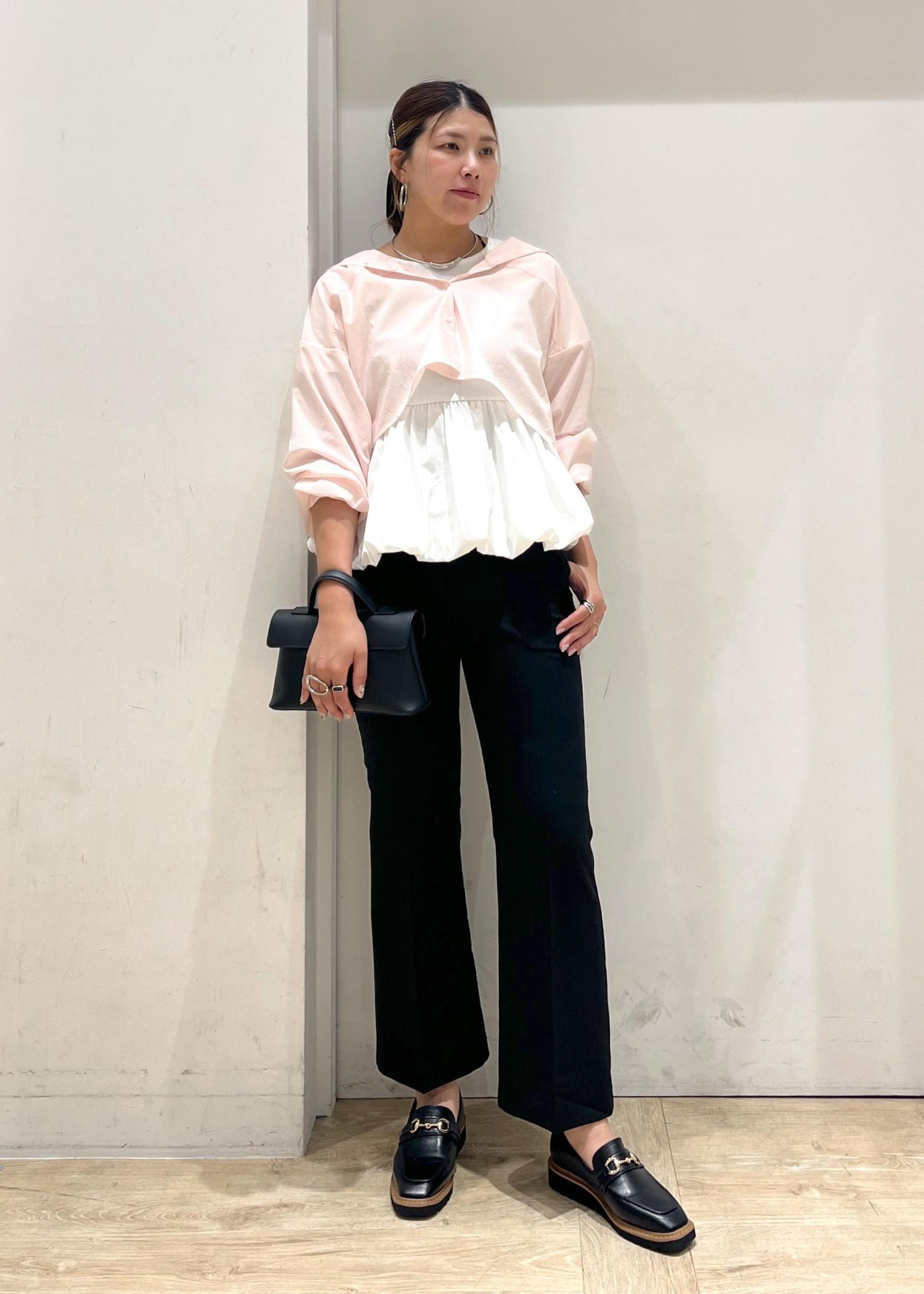 スソバルーンカットソー合わせでほんのりフェミニンさも。
