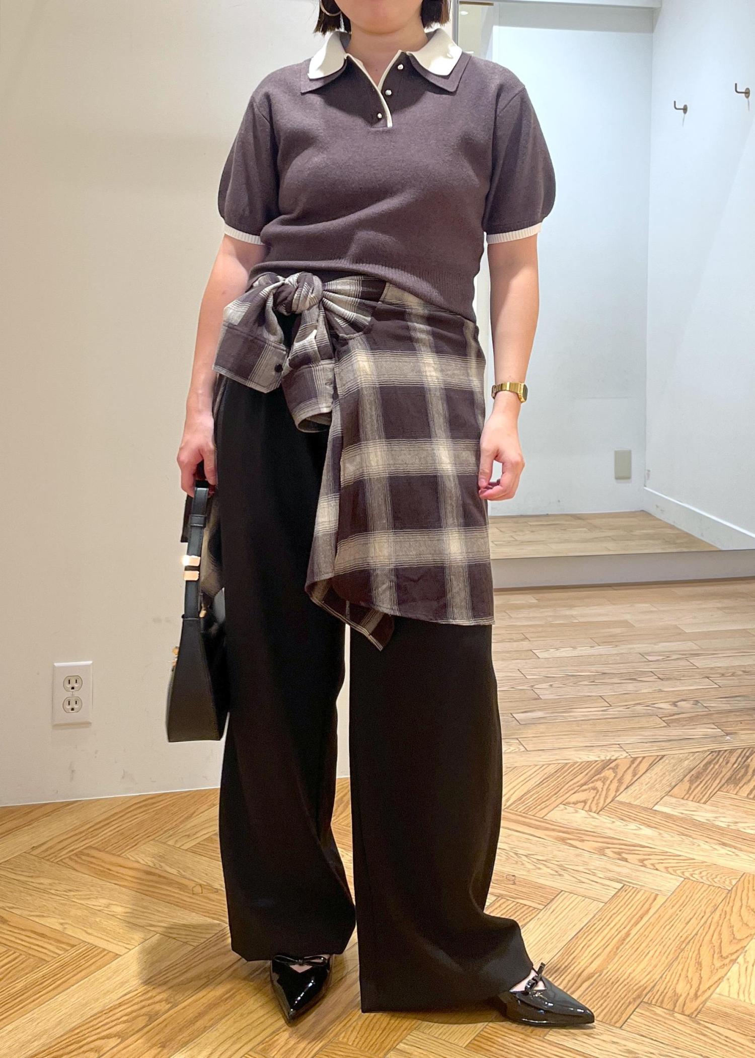トレンド感を楽しめるポロニットを使った、秋のニットコーデです。