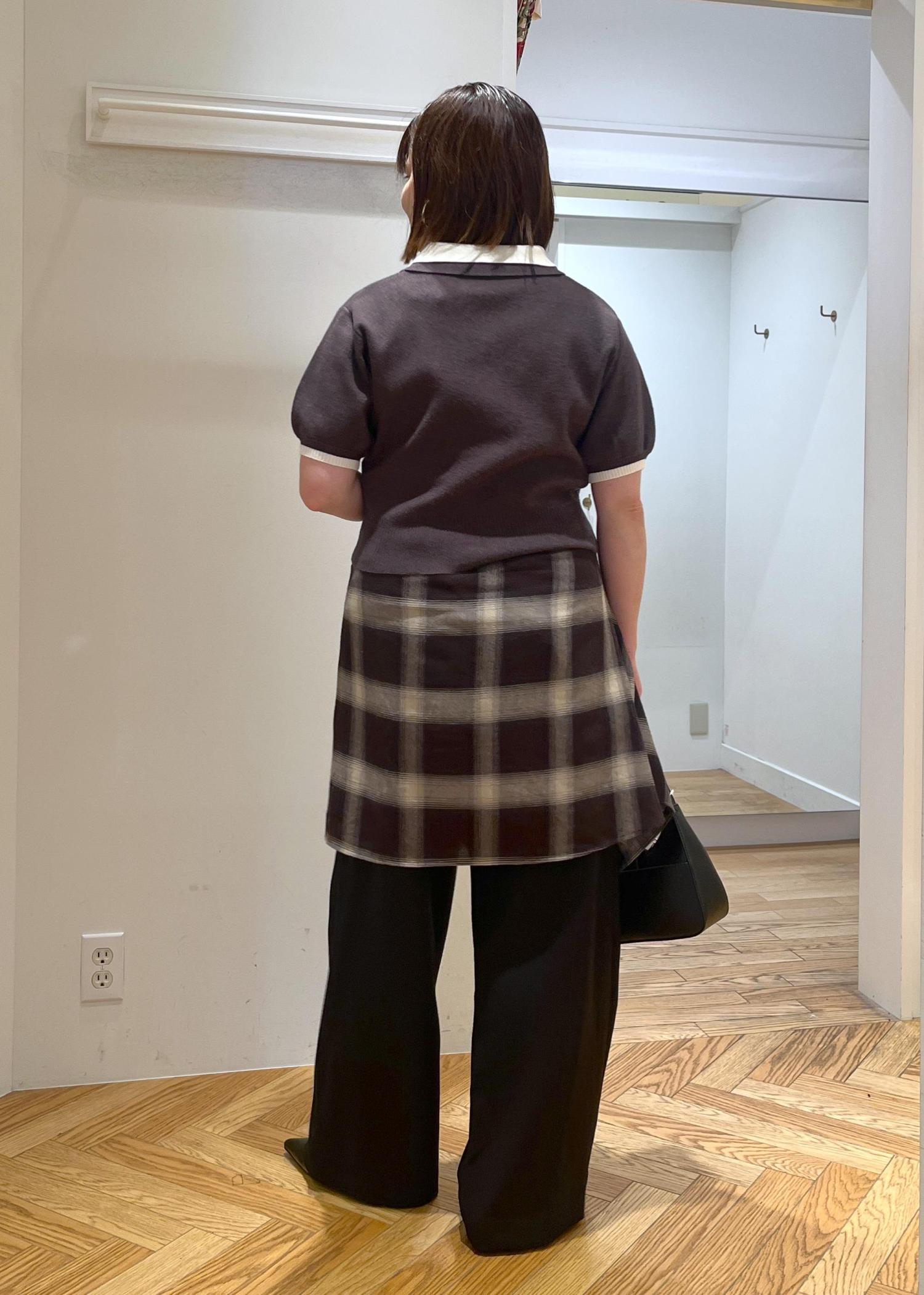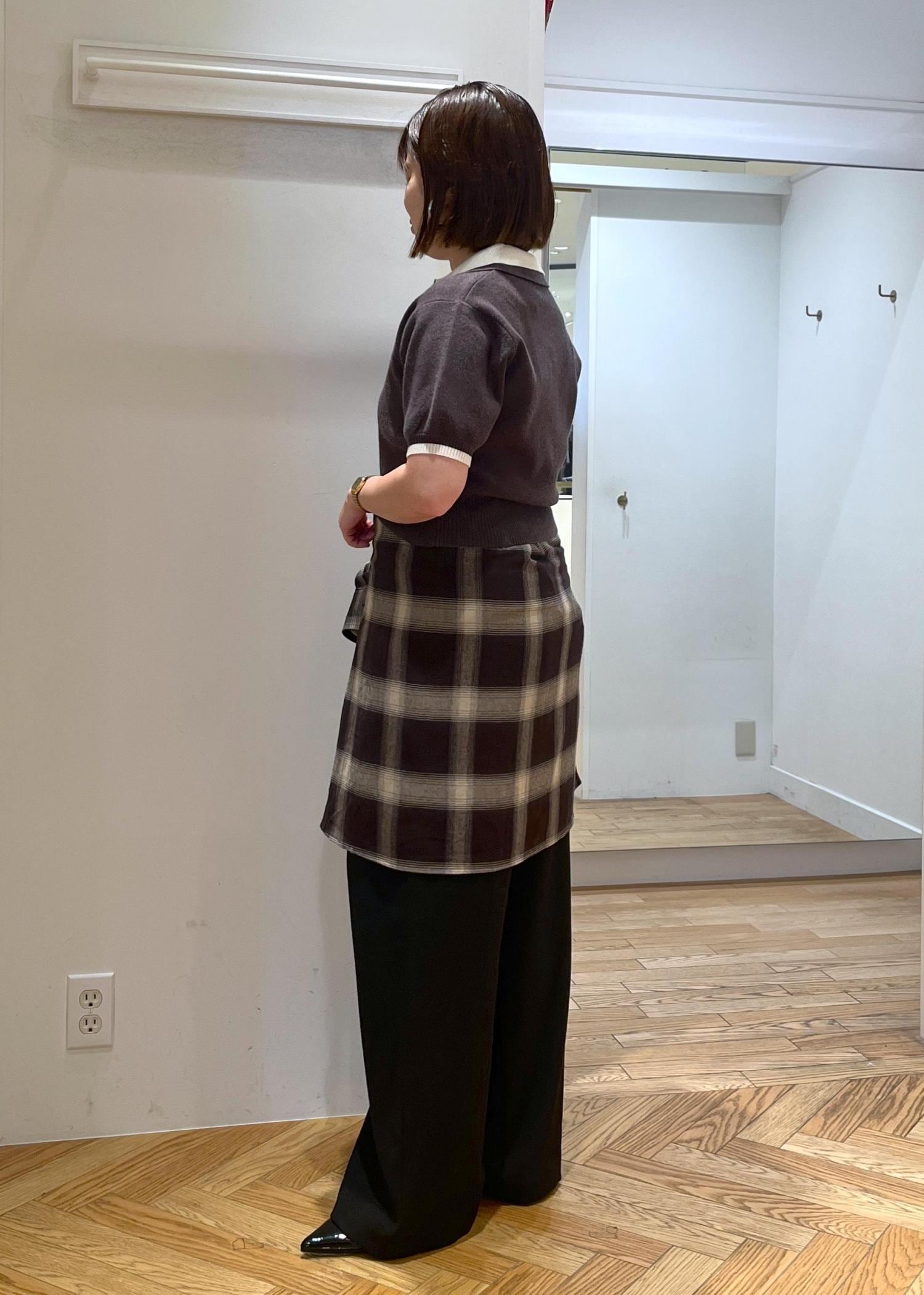 秋っぽさをプラスするのにチェックシャツを腰巻きしてみました!