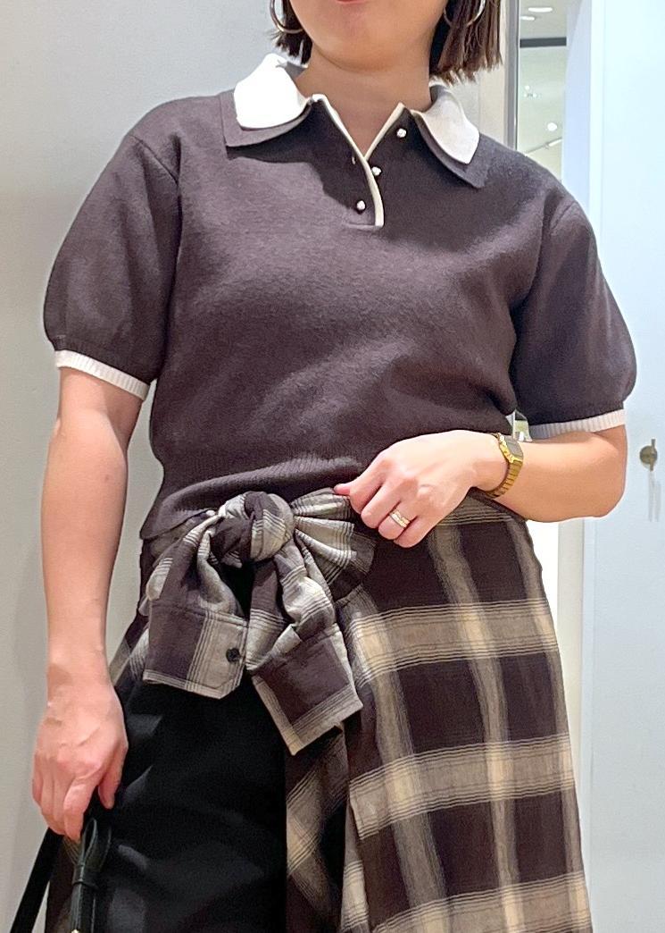 襟元がダブルカラーになったポロニットは、1枚でこなれ感を楽しめるアイテムです!