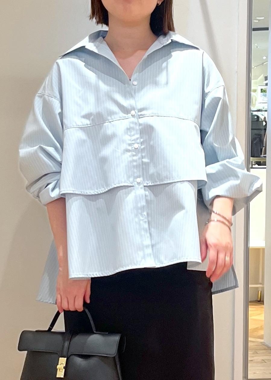 VIS裾ティアードオーバーシャツ/UVケア・イージーケアライトグリーン / F¥3,557レビューティアードデザインで、シンプルに着てもオシャレに決まるブラウスです✨