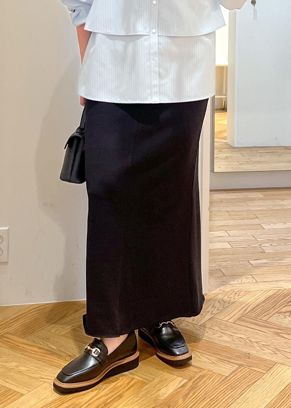 VISミニ裏毛ナロースカートブラック / F¥5,489レビュー155cm着用で、丁度いいマキシ丈になるスウェットスカートです。