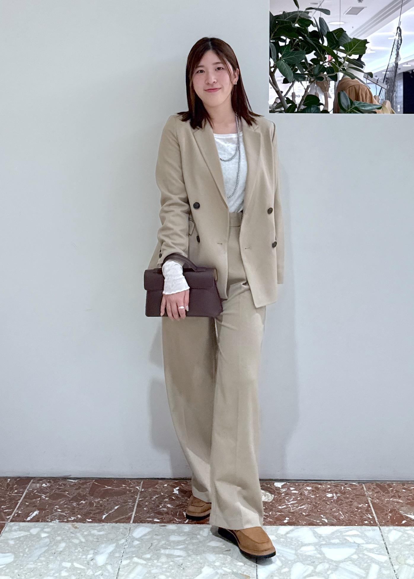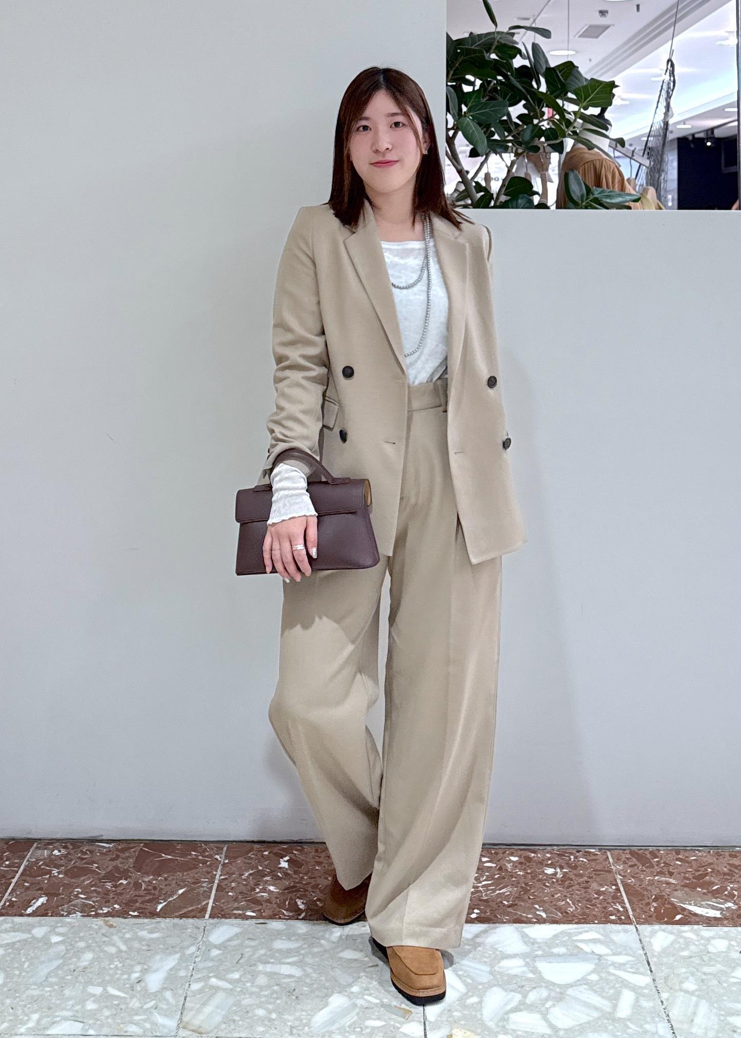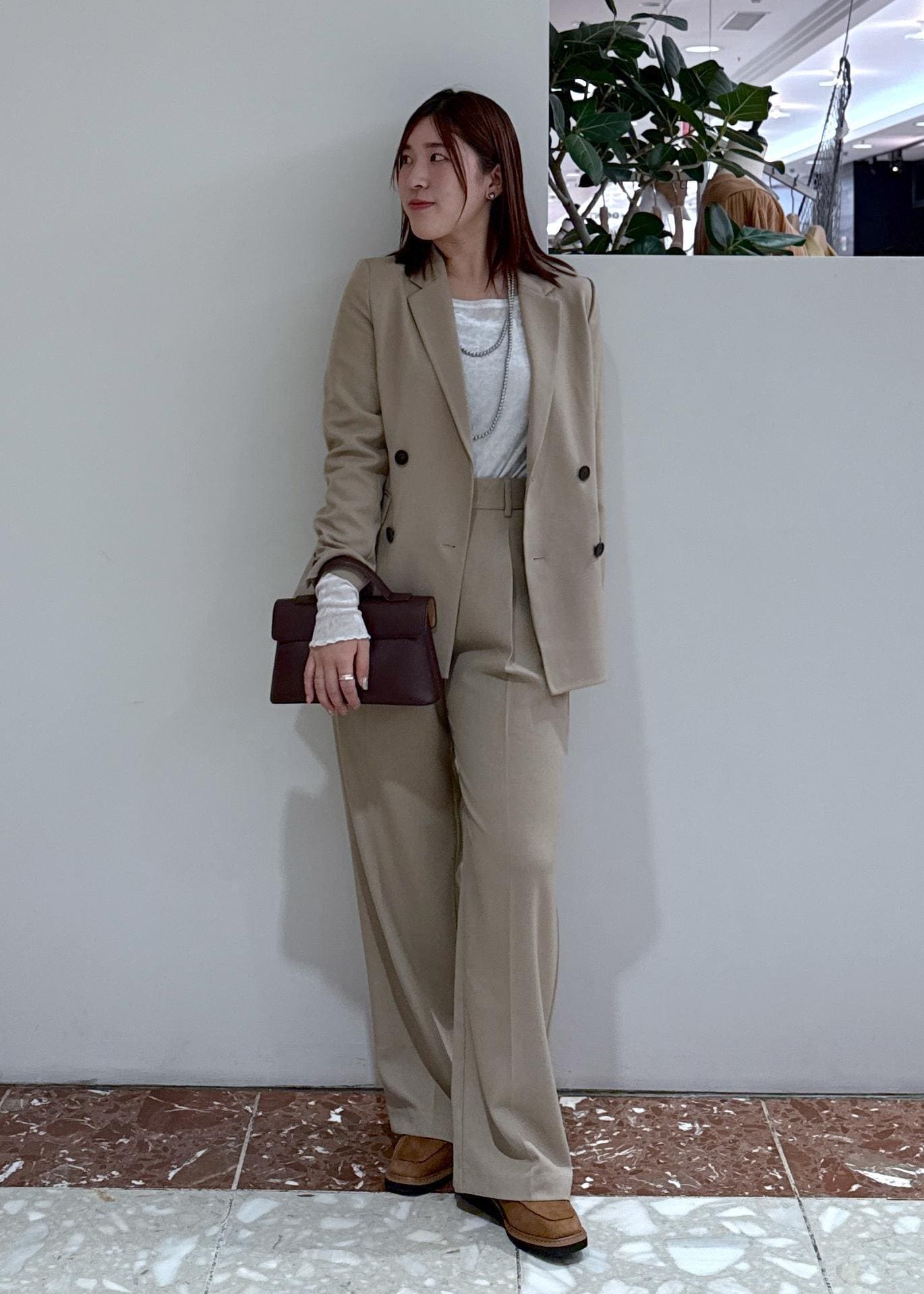 VIS美easyウーリッシュダブルブレストテーラードジャケット【セットアップ対応/洗える】ベージュ / S¥8,009レビュー160㎝Sサイズ着用してます。Sサイズでジャストサイズで着丈もゆったりめの作りなのでお尻あたりまであります。