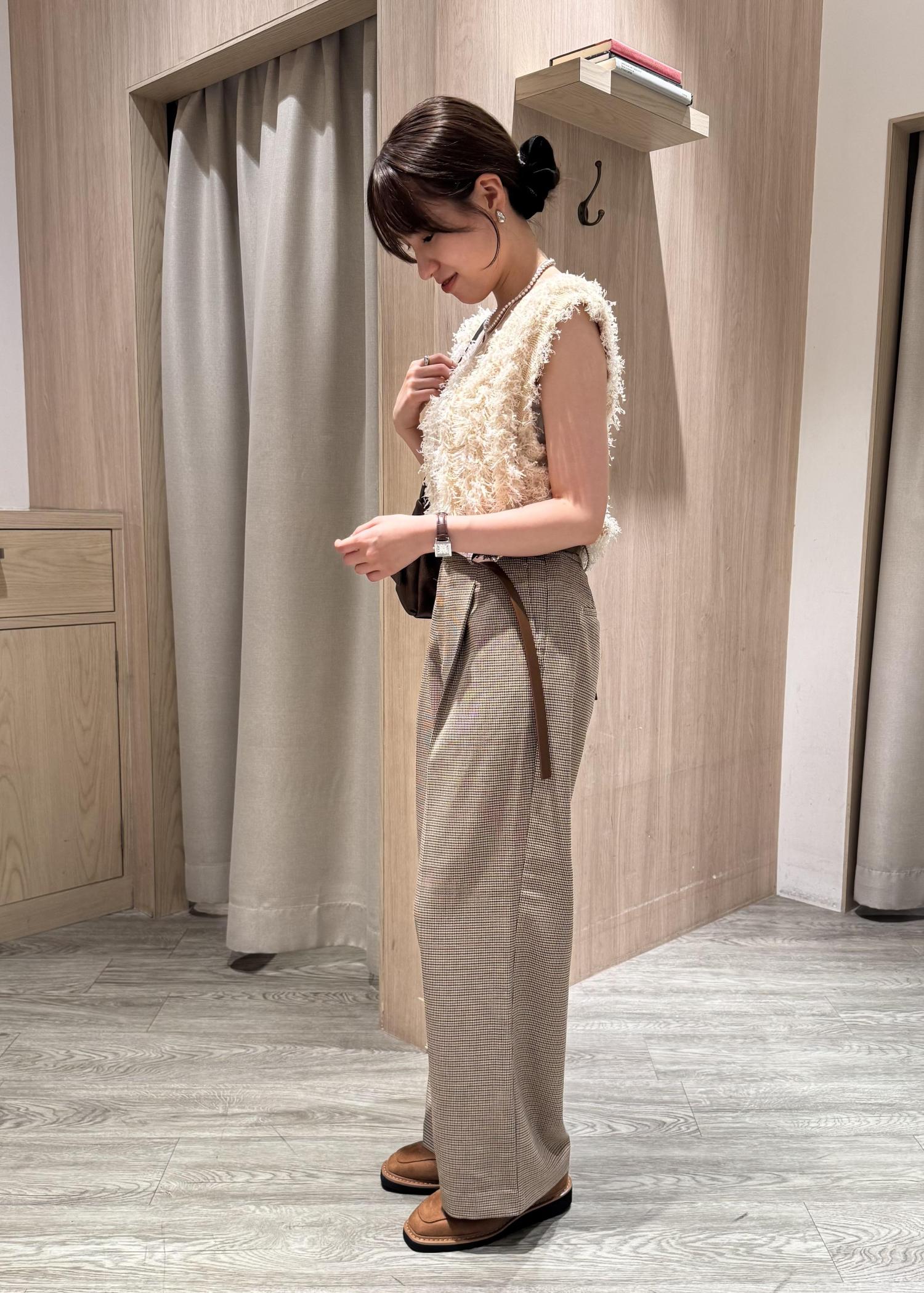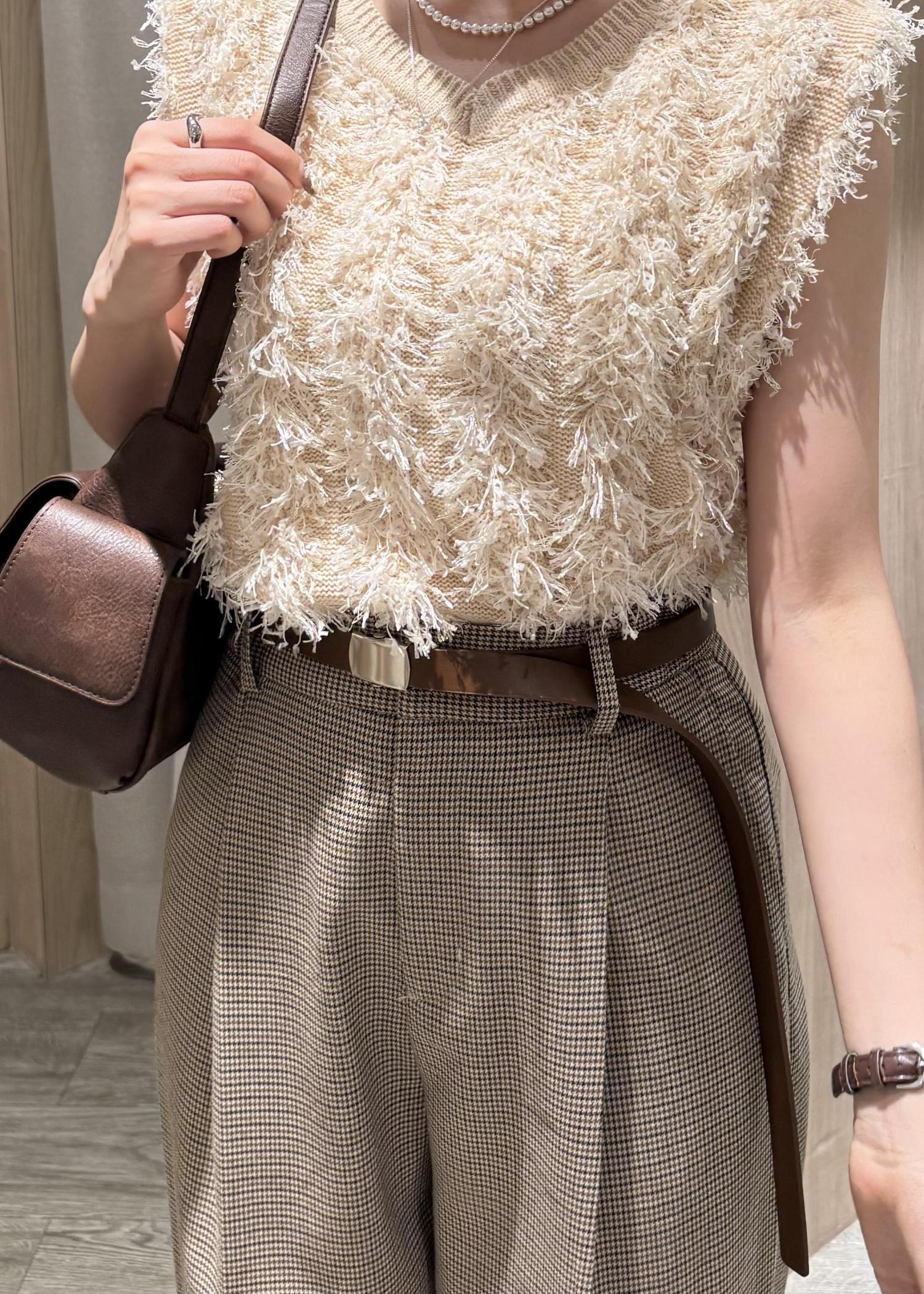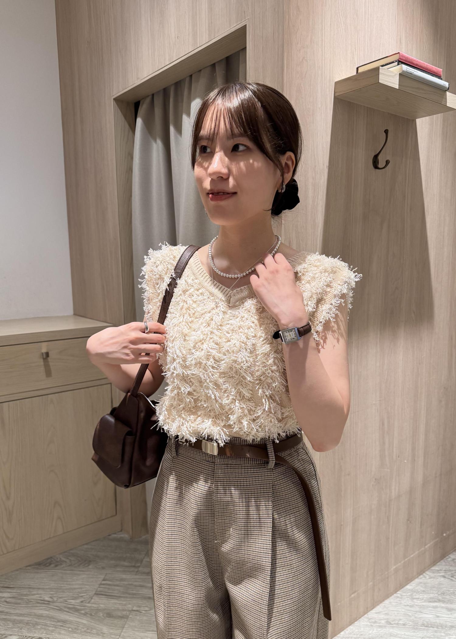 VIS【2WAY】フリンジニットベストキナリ / F¥5,929レビュー身長157cm / Fサイズ着用