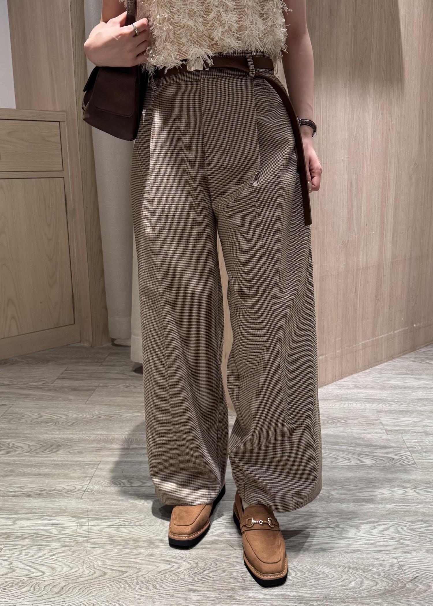 両サイドのボタンを縮めるとウエストに安定感が出て、くるぶし程の丈感でした!透け感も全く気にならないです!シワになりにくい素材なので、アイロンなしで着用いただけます! -