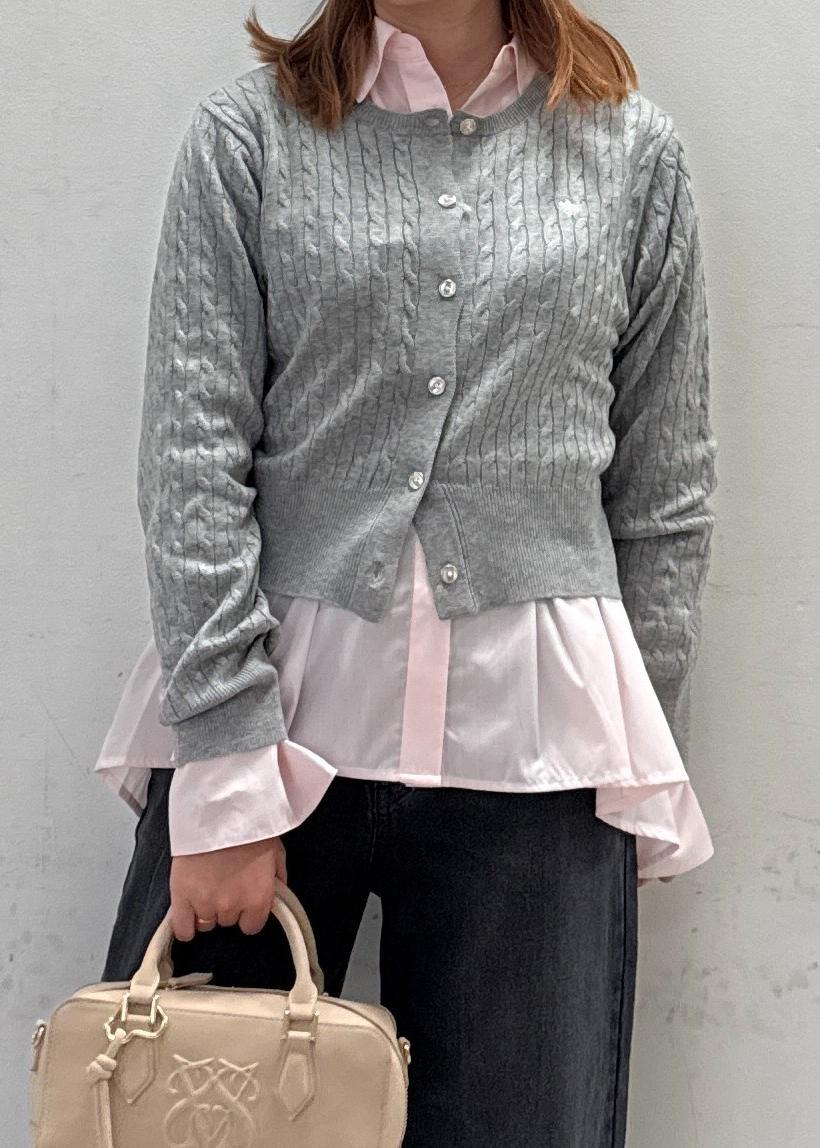 VIS【POLO BCS】VIS別注ミニケーブルノーカラーニットカーディガンライトグレー / F¥6,930レビュー伸縮性があるので、重ねて着てもゴワゴワなりにくいです!