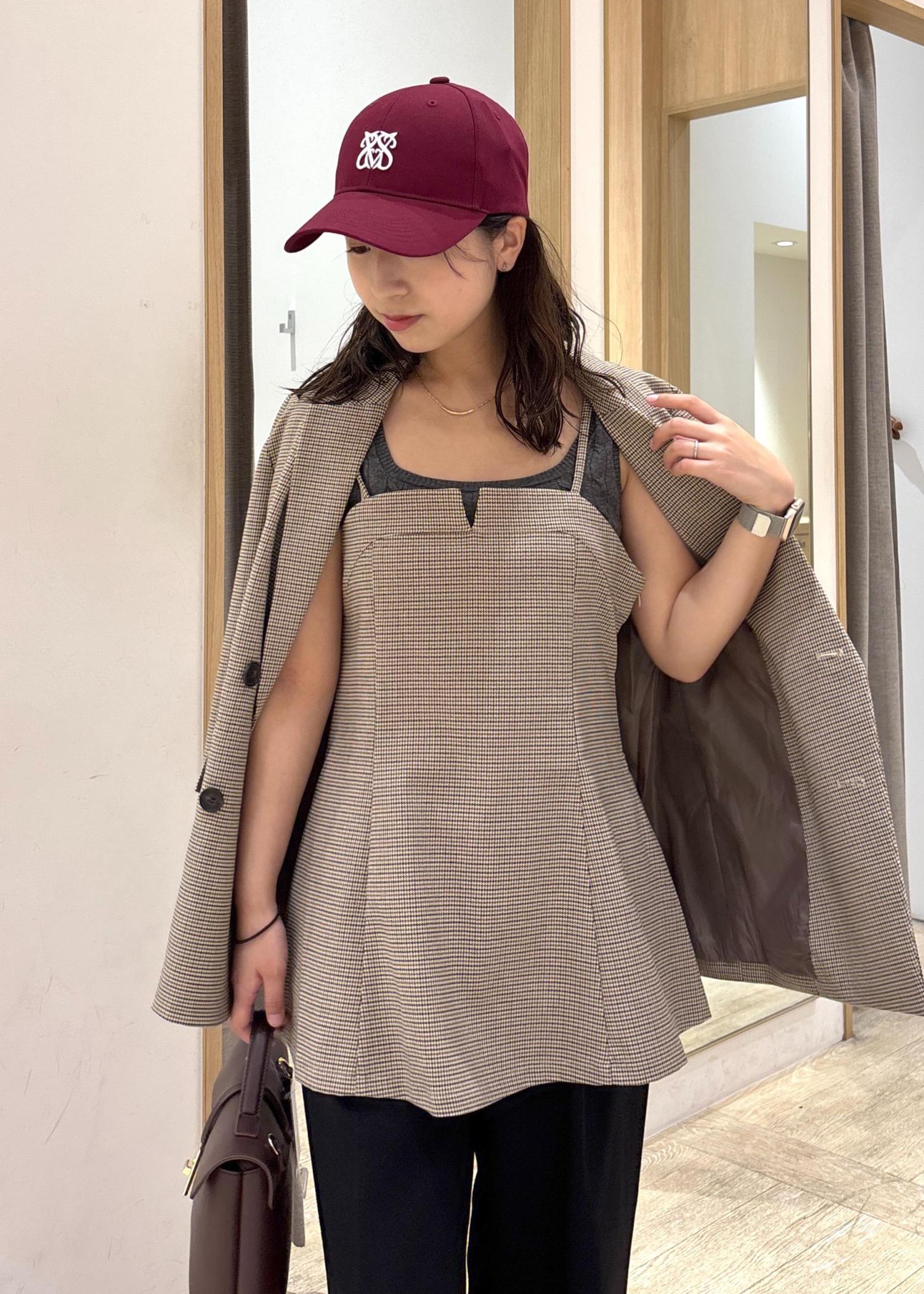 大人っぽいロゴ刺繍でキャップがカジュアルになりすぎずに取り入れられます◎
