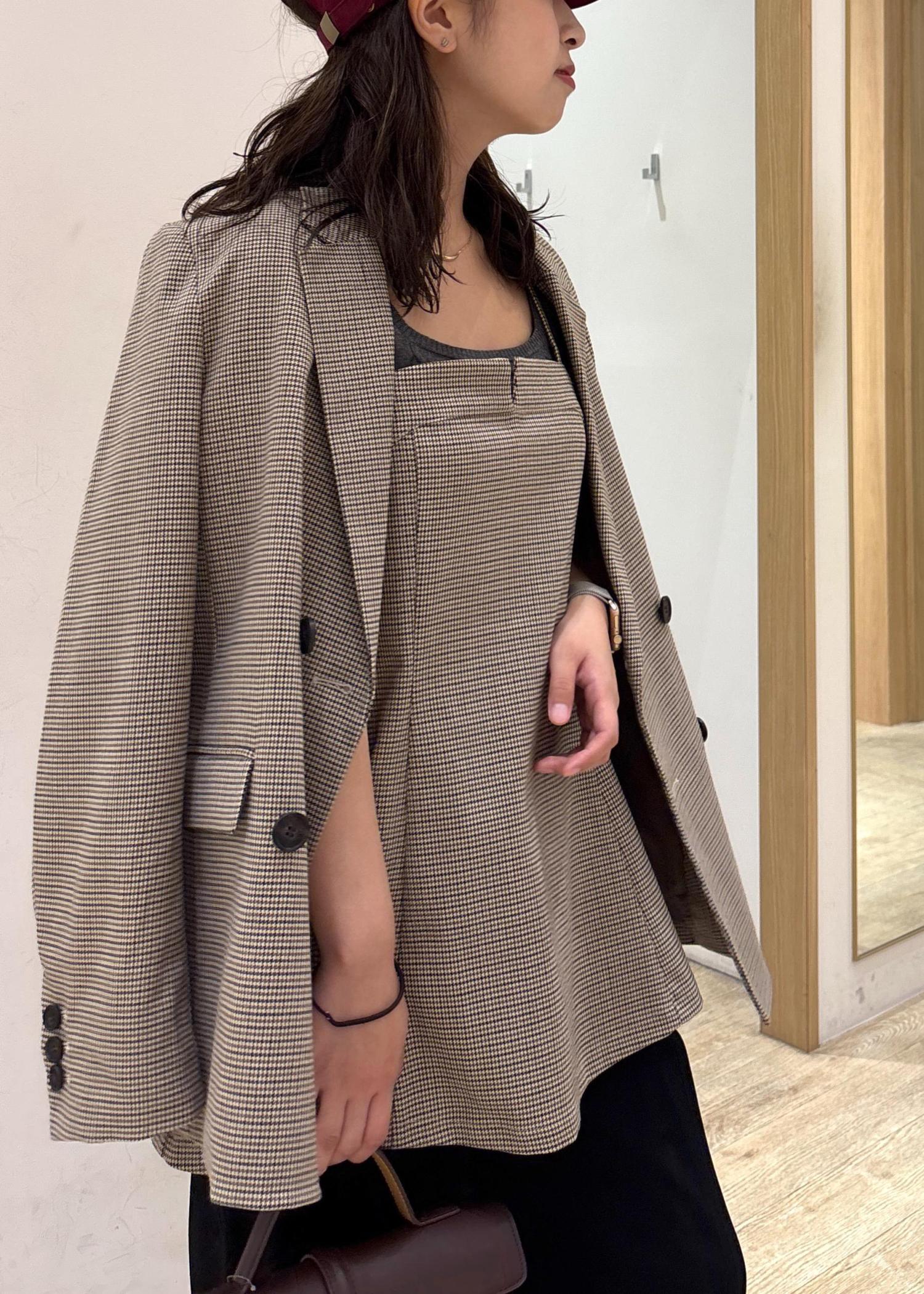 ほんのり起毛感のある生地感と裏地付きのデザインでしっかりアウターとして機能するアイテムです☺︎