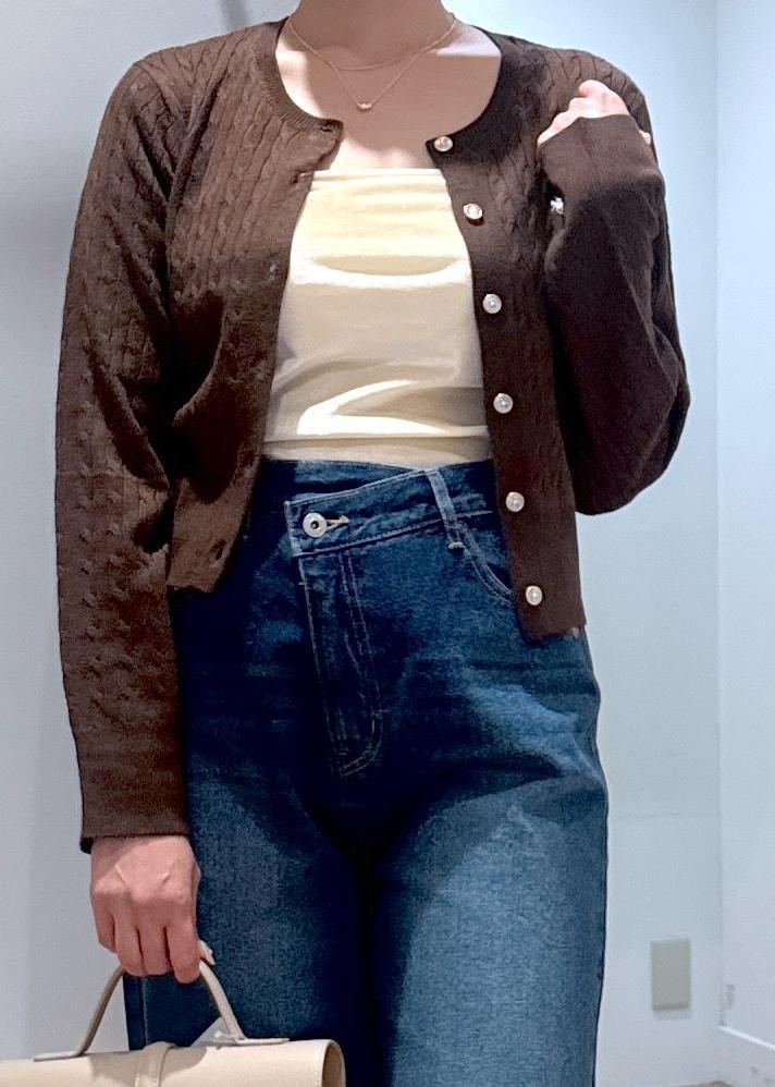 VIS【POLO BCS】VIS別注ミニケーブルノーカラーニットカーディガンダークブラウン / F¥6,930レビュー身長161cm Mサイズ着用で腰下くらいの丈感です。