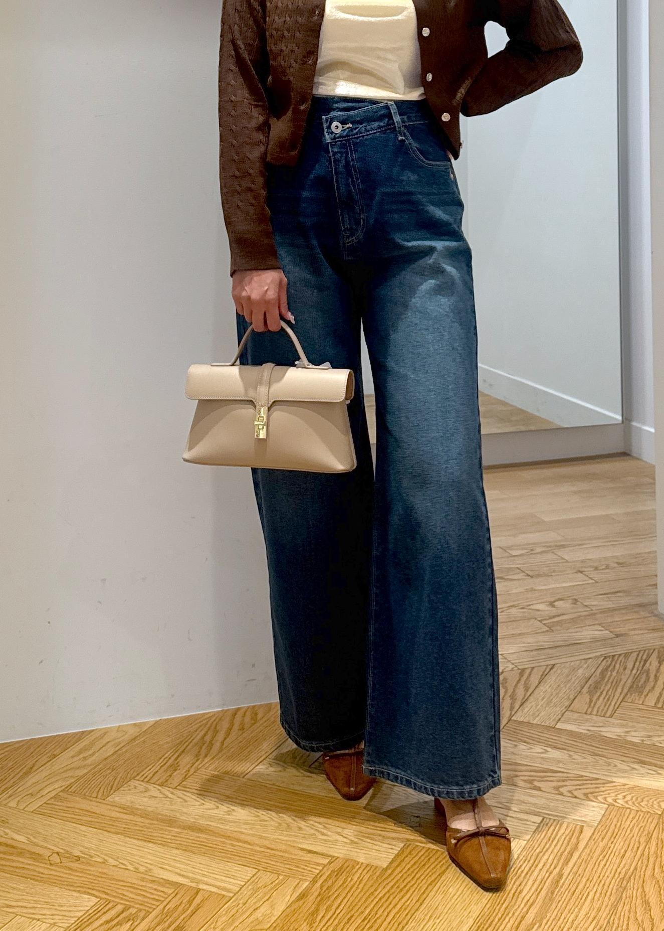 クロスベルトがポイントのストレートワイドデニムです。デニムパンツはでスタイルアップを叶えてくれます◎ -