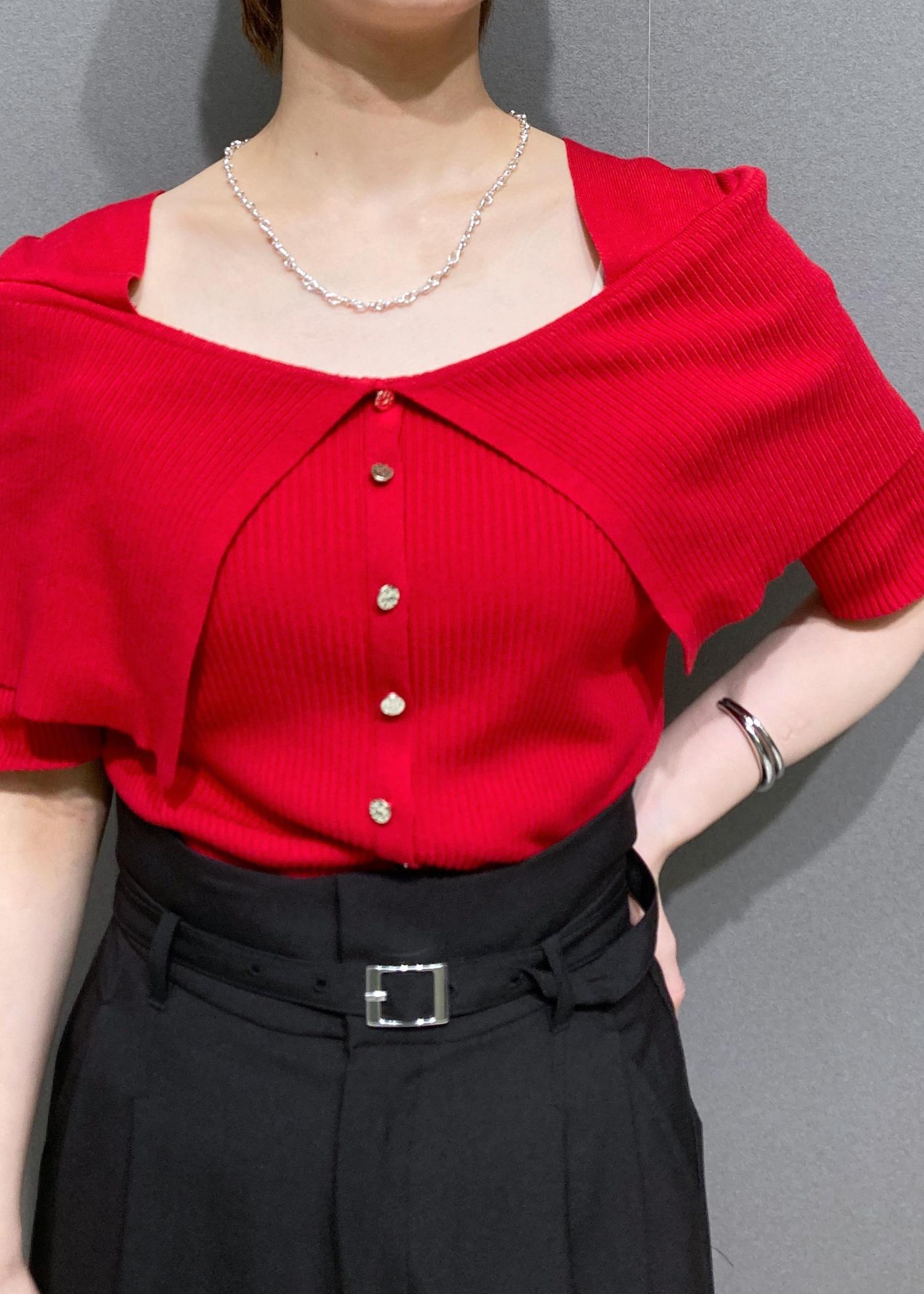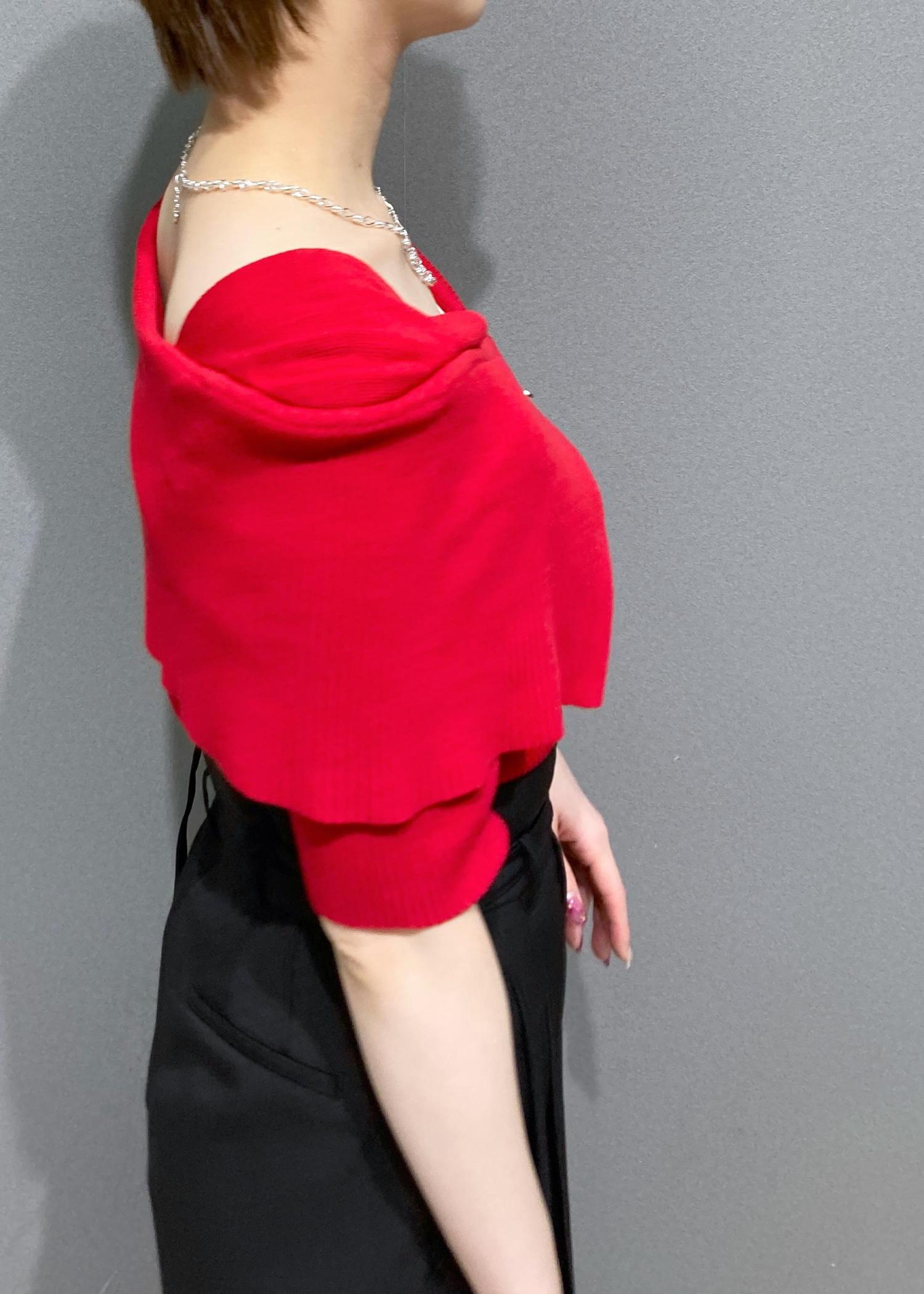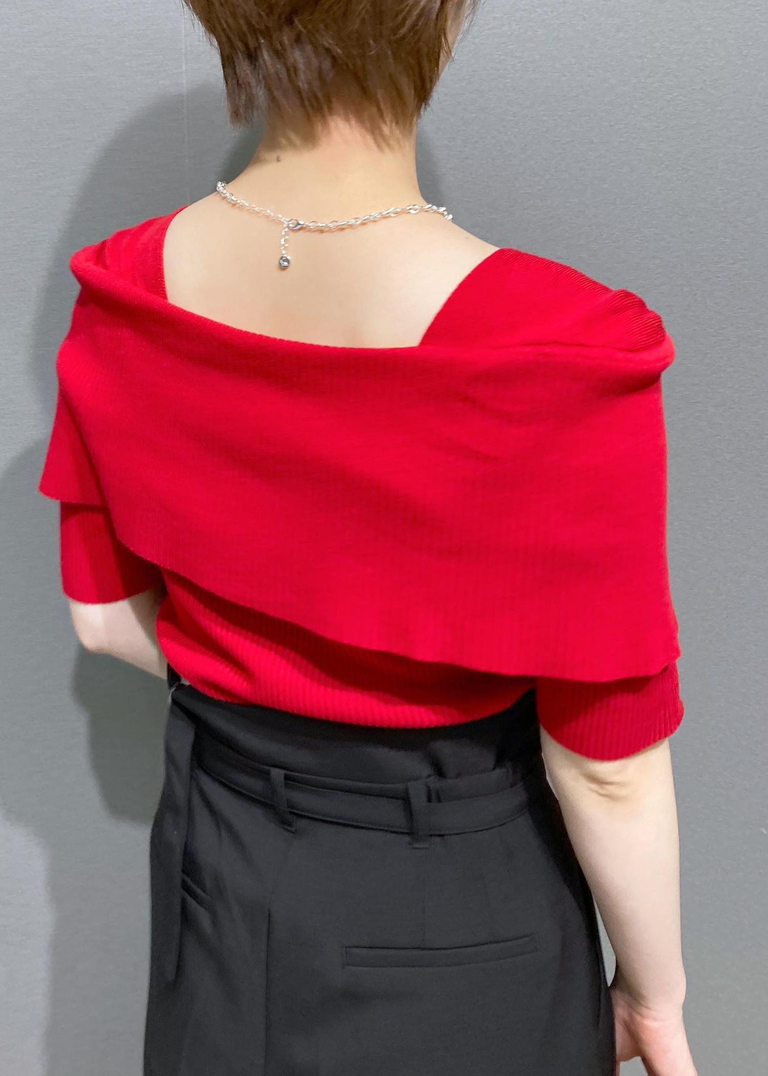 ニットでも程よく肌見せができるので、重たく見えないです。