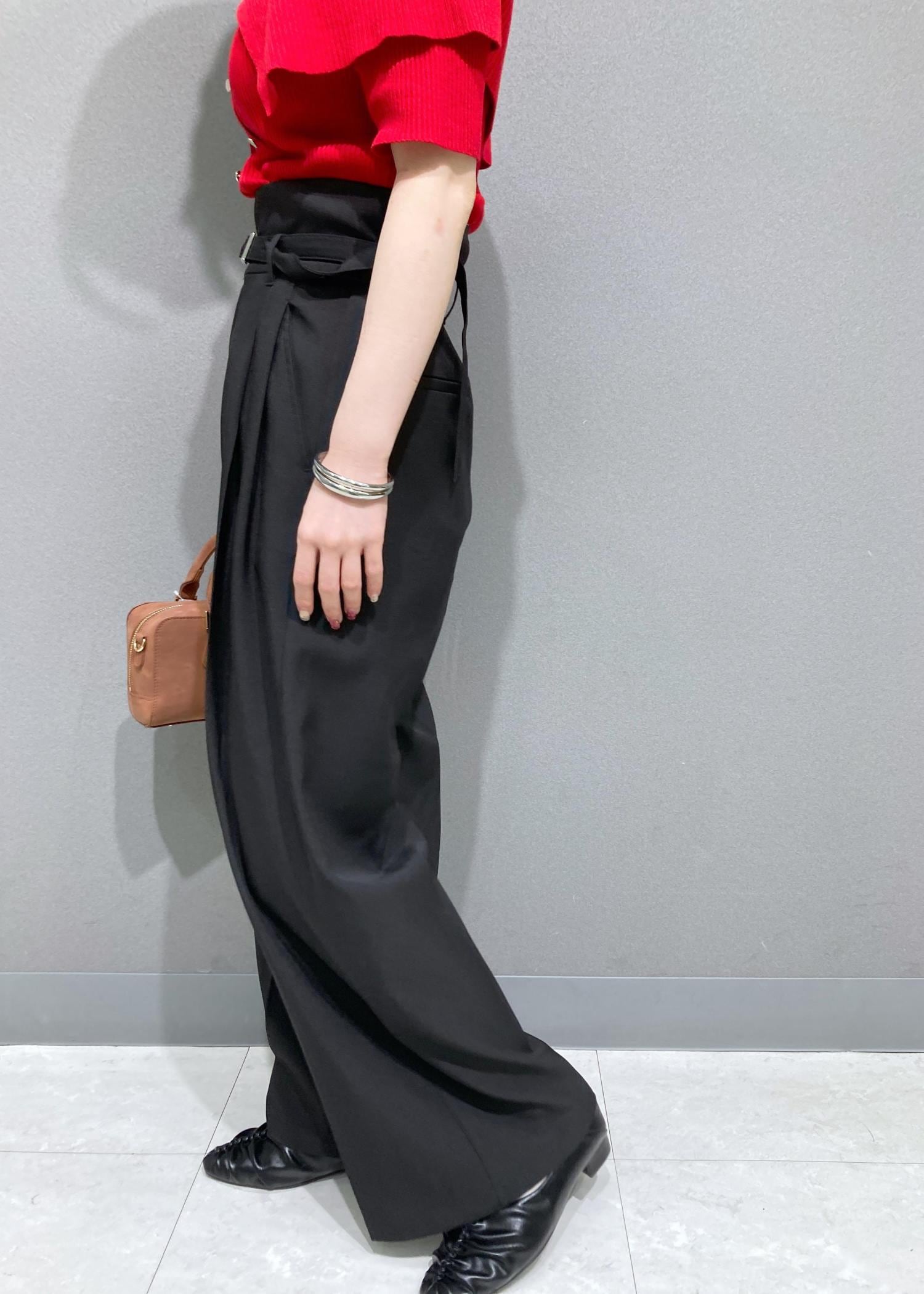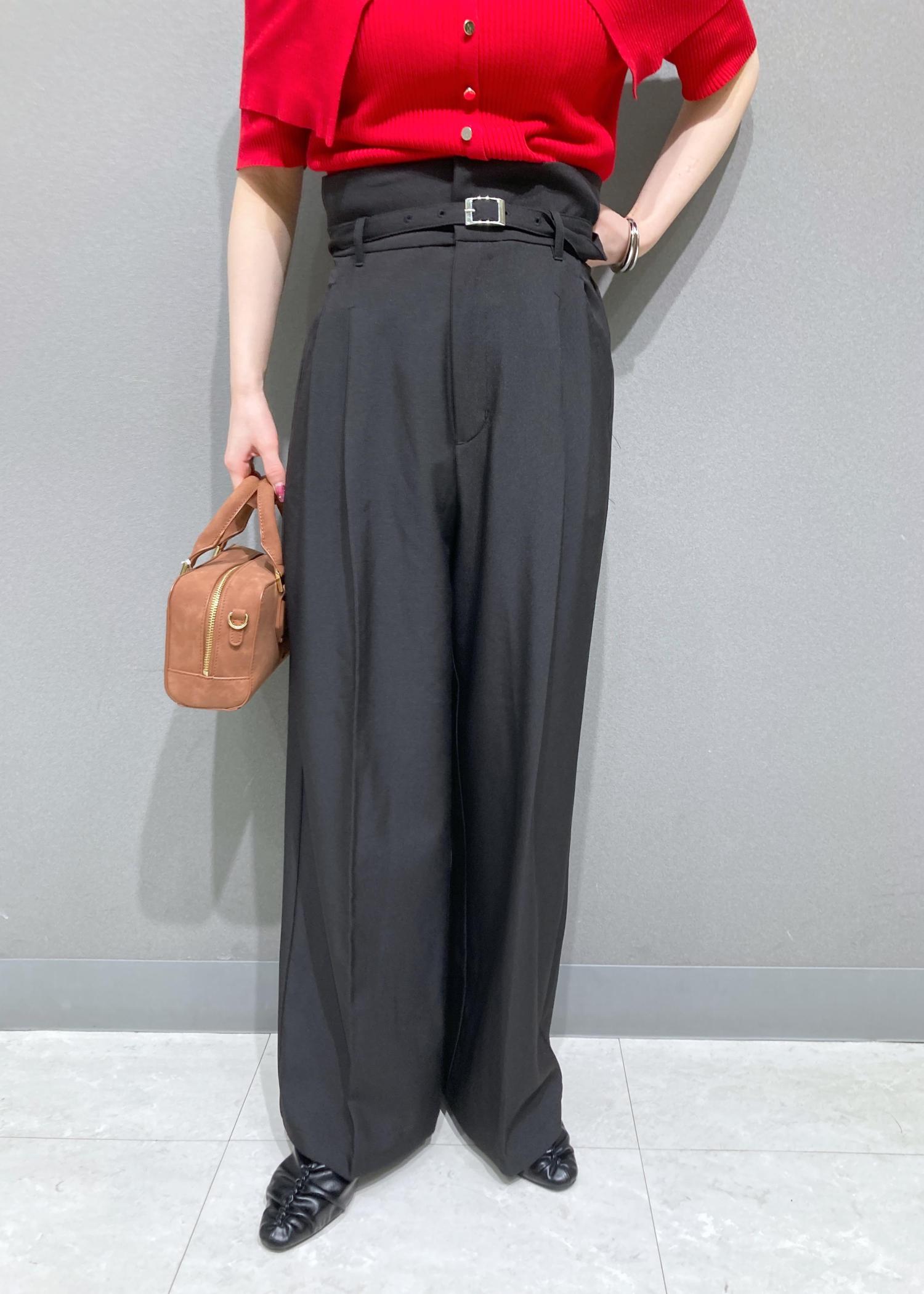 【新色追加】【防シワ/接触冷感】ベルトディテールタックワイドスラックスパンツ