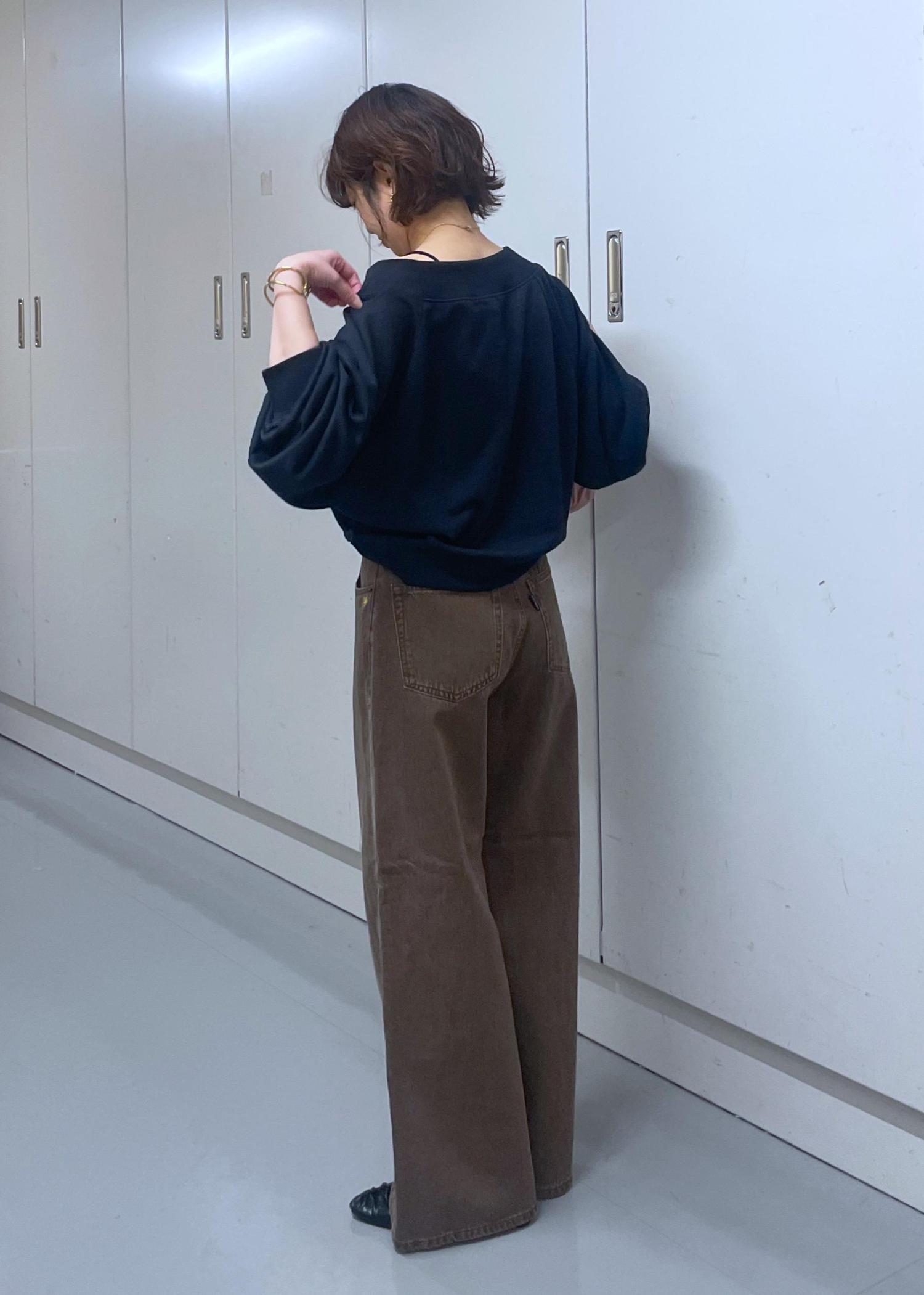 同じく別注のデニムはウエストにデザインがあるので、トップスインがオススメです。
