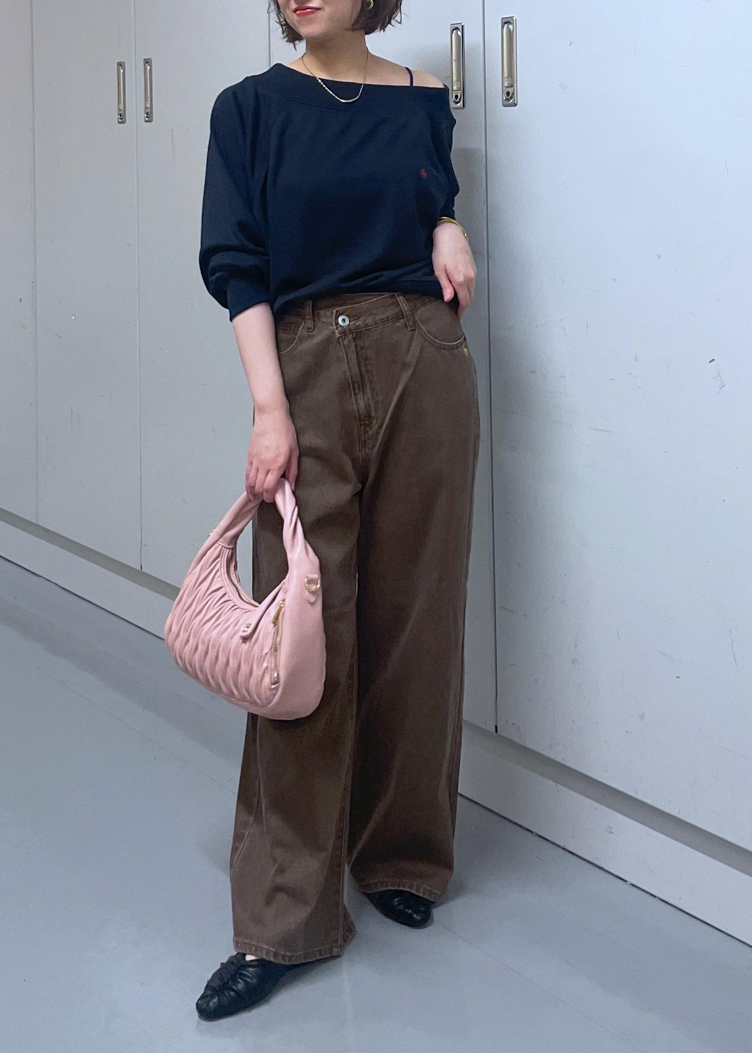 ポケット部分に入ったロゴや、クロスベルトのウエストデザインがシンプルになり過ぎず、デニム好きさんにもおすすめです!