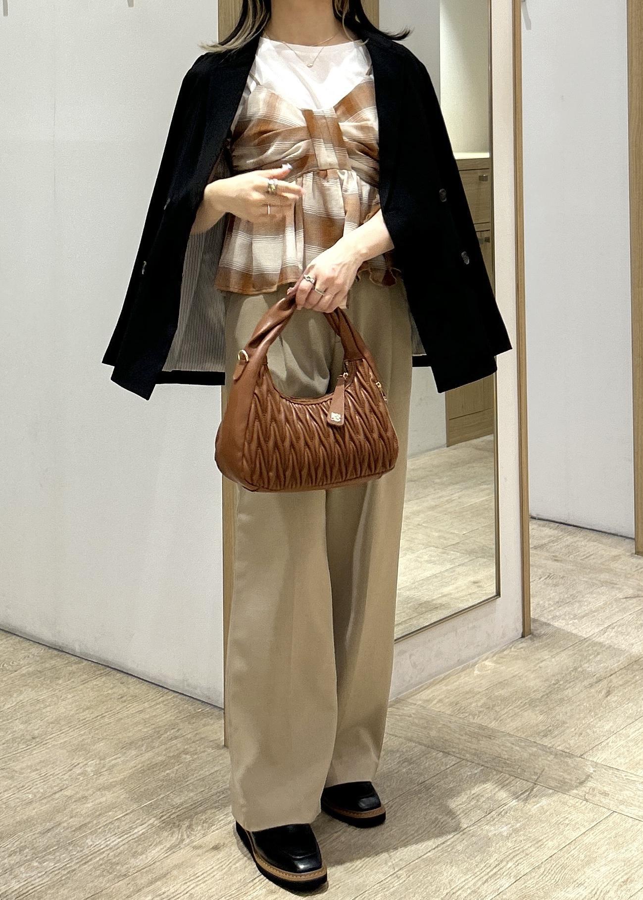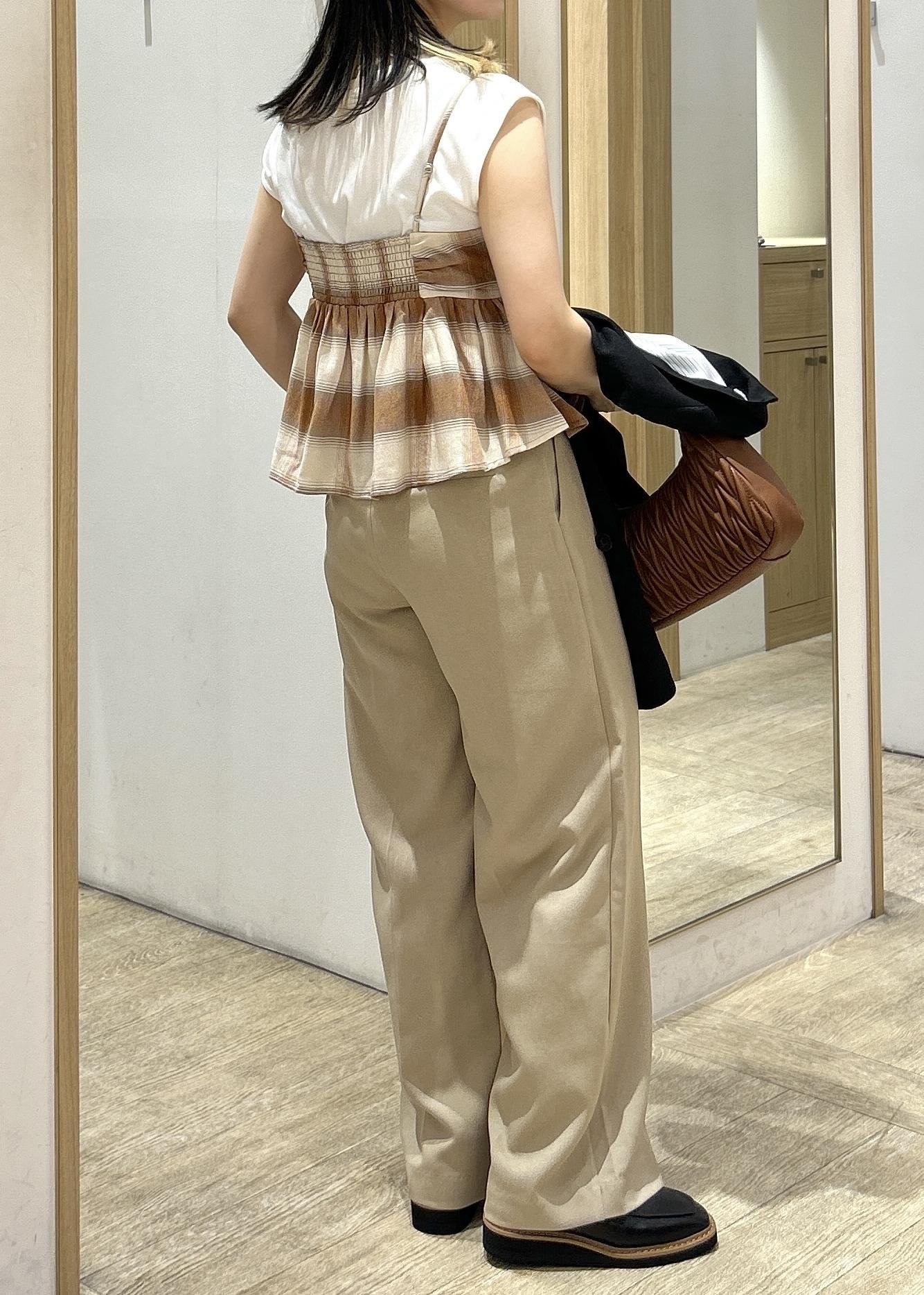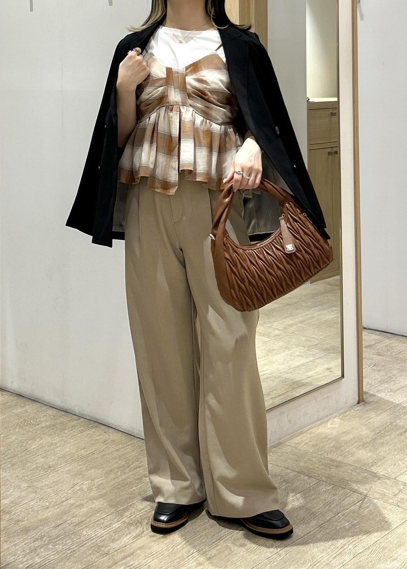 フレンチスリーブのTシャツは、秋っぽさをプラスするためにビスチェとあわせました☺︎