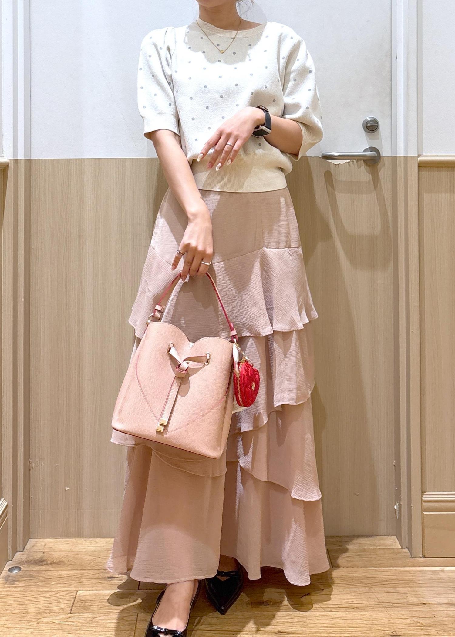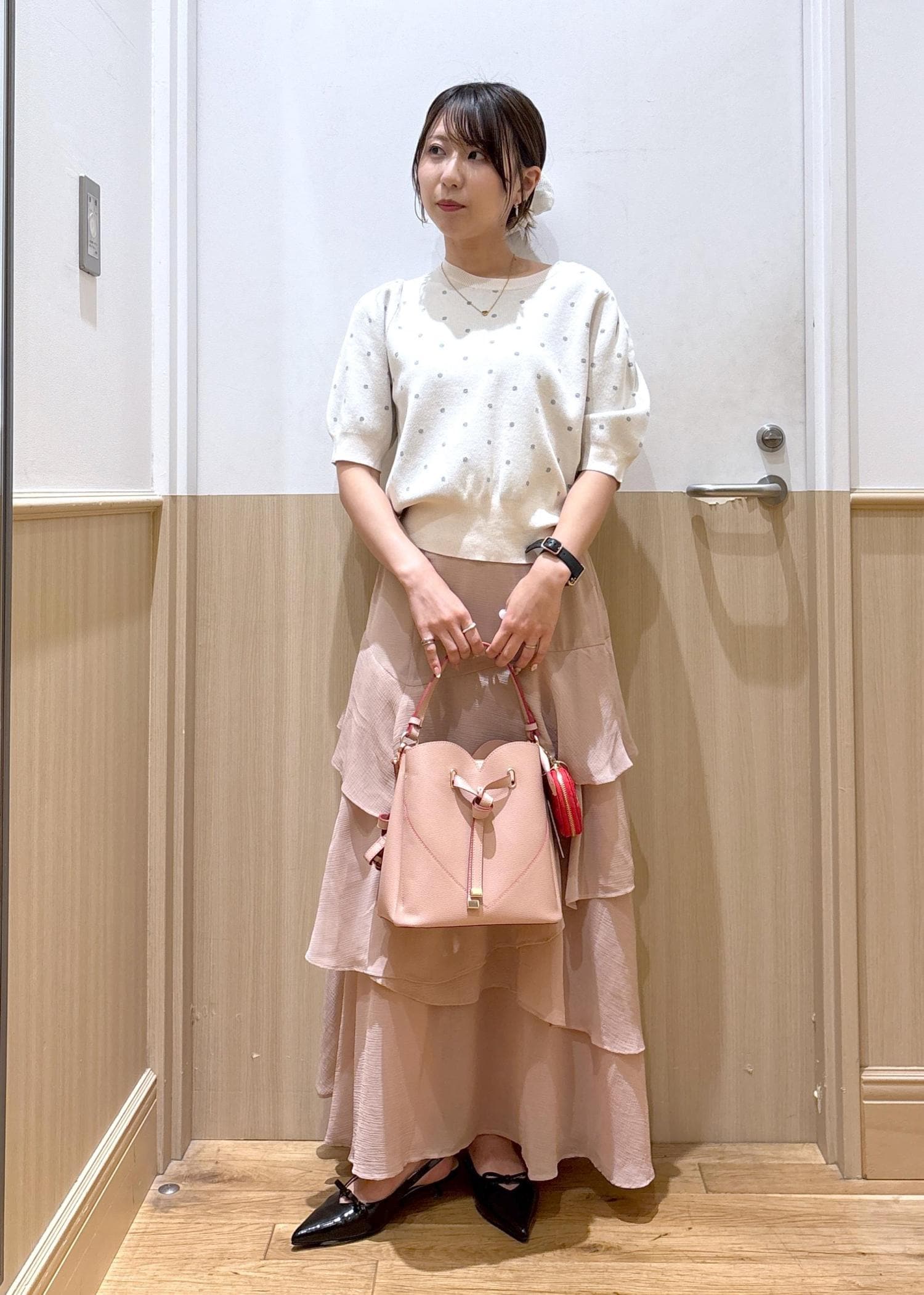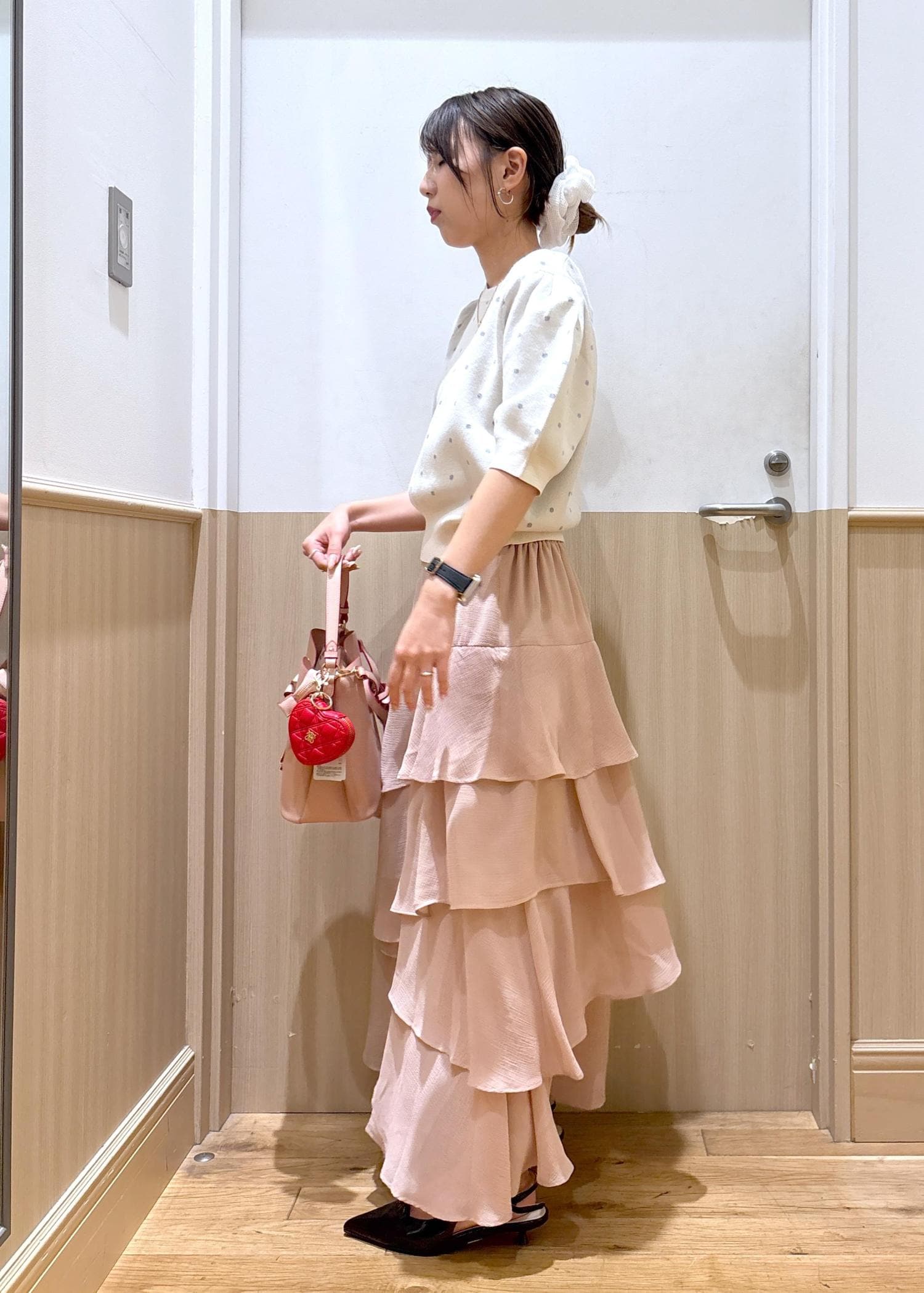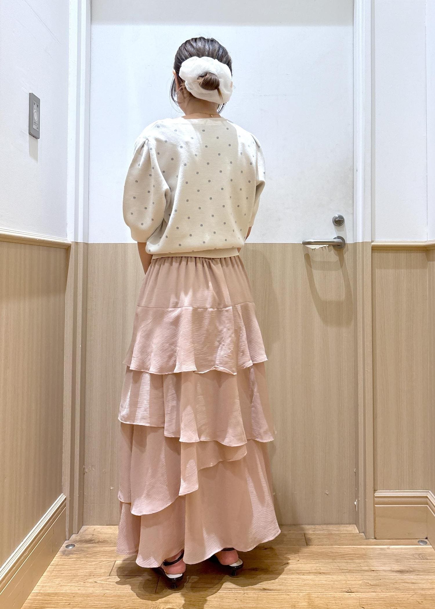 お袖のパフスリーブも、肩から大きくならずに膝にかけてゆるやかに丸いシルエットなので、肩幅も気にせず着用できます。