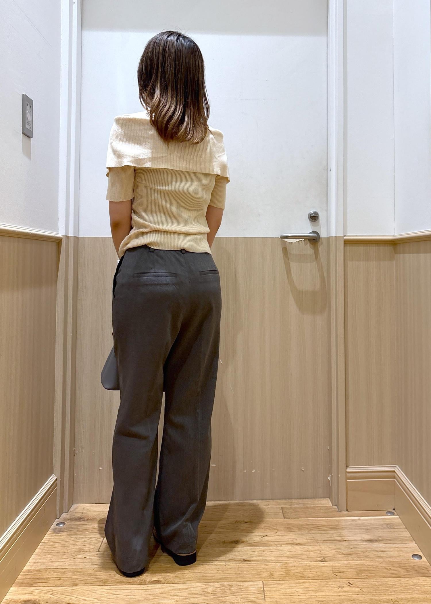 お尻も、このフレアのスラックスならあまりお尻はピッチリしなかったので、女性らしいシルエットを残しつつ、膝などの華奢めなパーツなどはラインを添わせてあげております♪