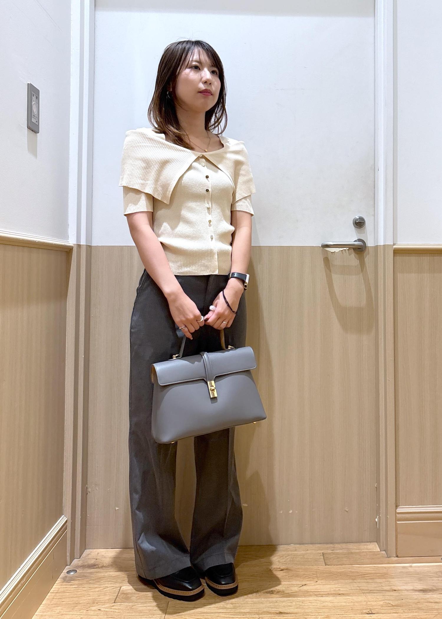 マチがしっかり大きめですが、ハンドルの方にかけてだんだんと薄いシルエットになるので、斜めがけしても存在感が大きすぎず綺麗目な印象で使っていただけます。 -