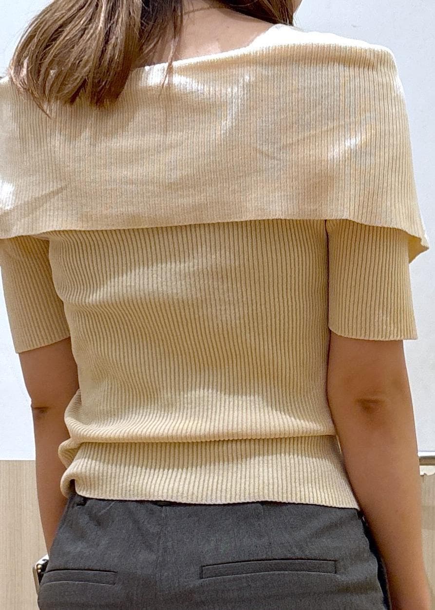 VISビックカラーオフショルハーフスリーブニットベージュ / F¥2,963レビュー肩にマチがついているので、露出しすぎないほどよいオフショルシルエットのトップスです。
