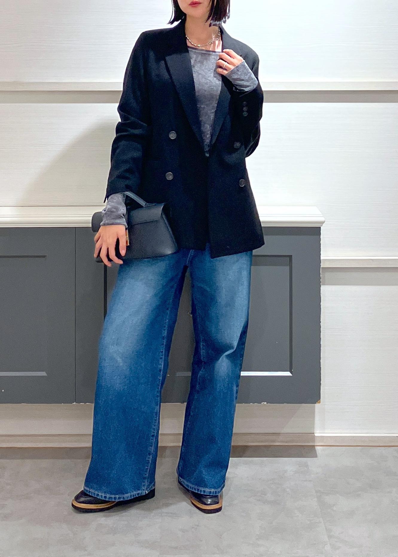 ブラックジャケット×デニムはカッコよく決まりますね〜!