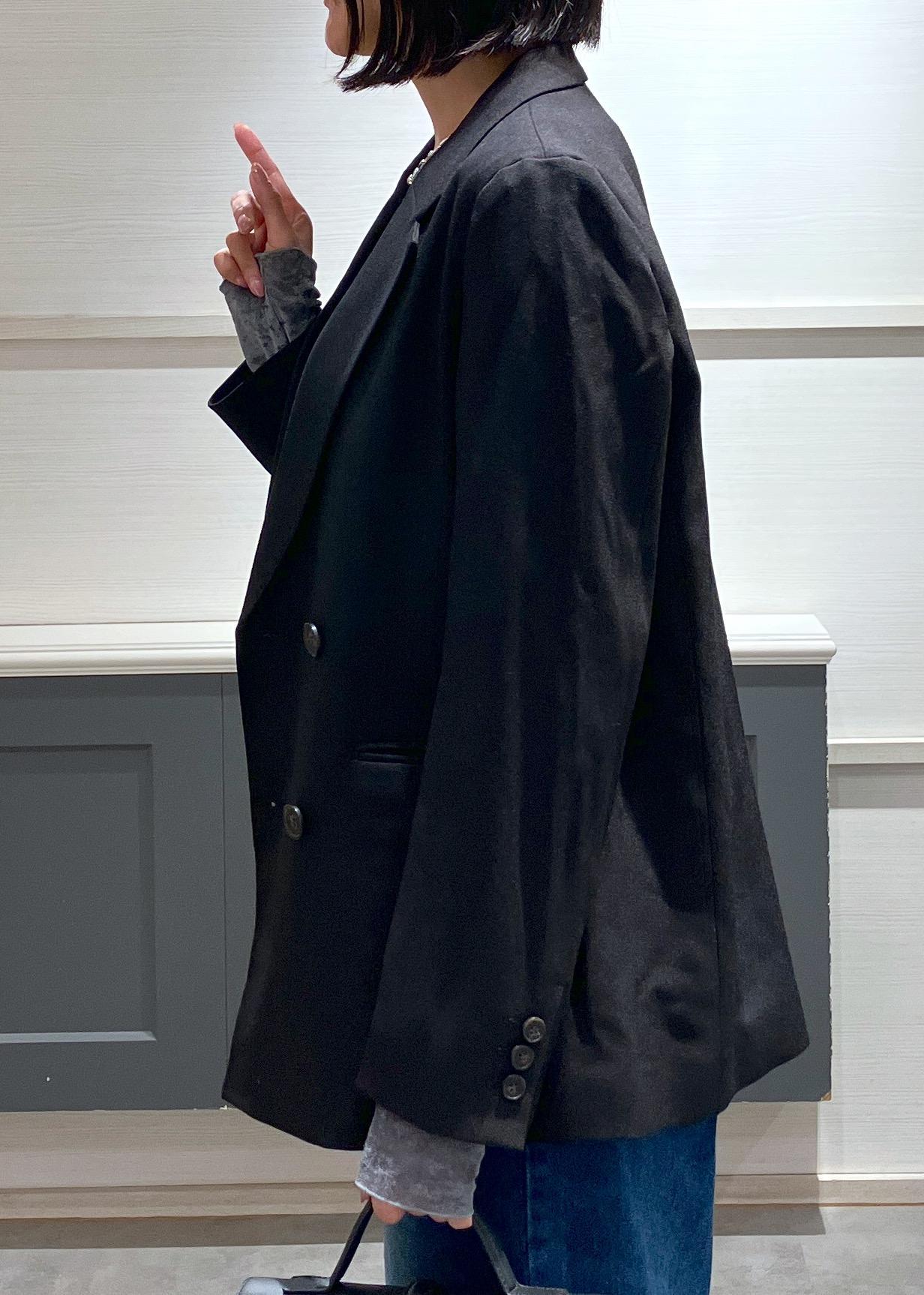 VIS【美easy】ウーリッシュダブルブレストテーラードジャケット【セットアップ対応/洗える】ブラック / S¥8,899レビュー身長168センチでお尻はすっぽり隠れる着丈です!