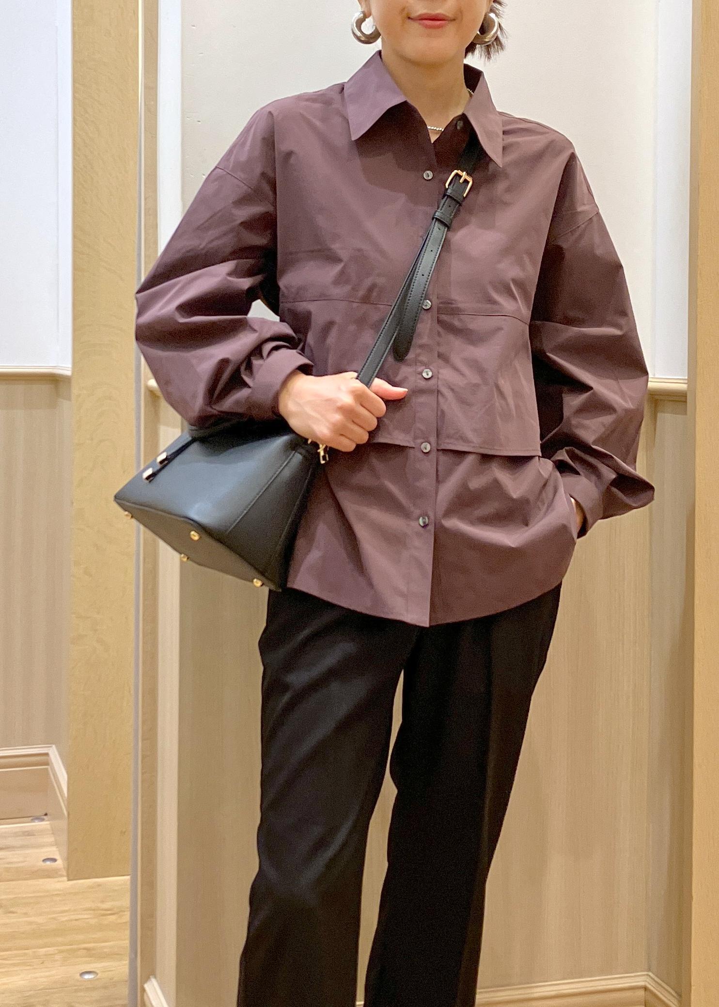他の人と被りがちなシャツアイテムは秋のトレンドカラーのブラウンカラーを選んだところがポイントです。