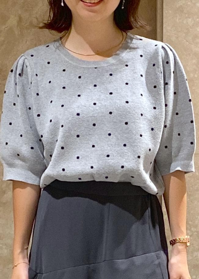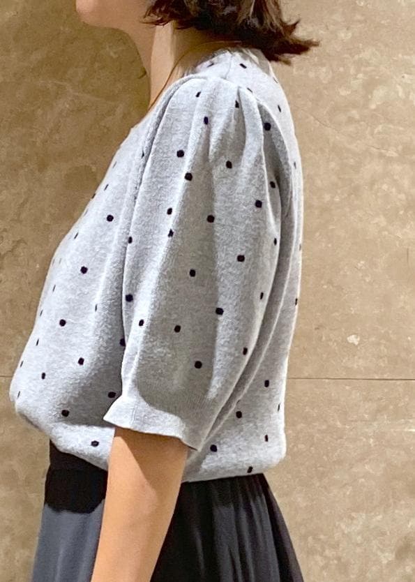 程よいパフスリーブで、肩周りも気にならず綺麗に見えます◎ドットも小さめでとても可愛いです♡素材感はサラッとしており、チクチク感もなく着用できました!Fサイズで少しゆったりめですが、パンツやスカートにINするとスッキリ見えます◎ -
