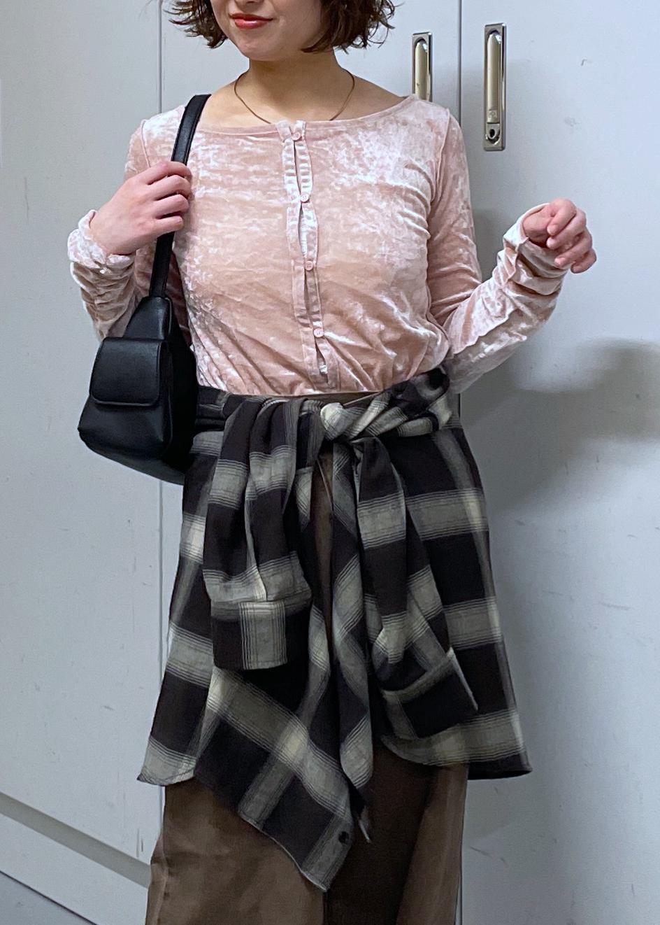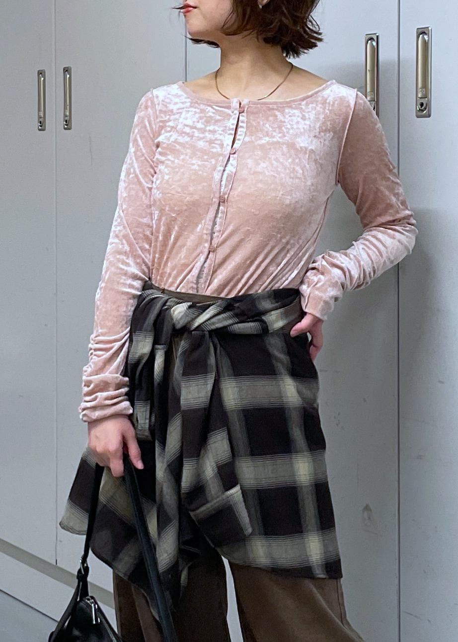 VIS【2WAY】花柄&無地アソート袖シャーリングベロアカーディガンピンク / F¥3,951レビューシアー感があるので、インナーは必須です。