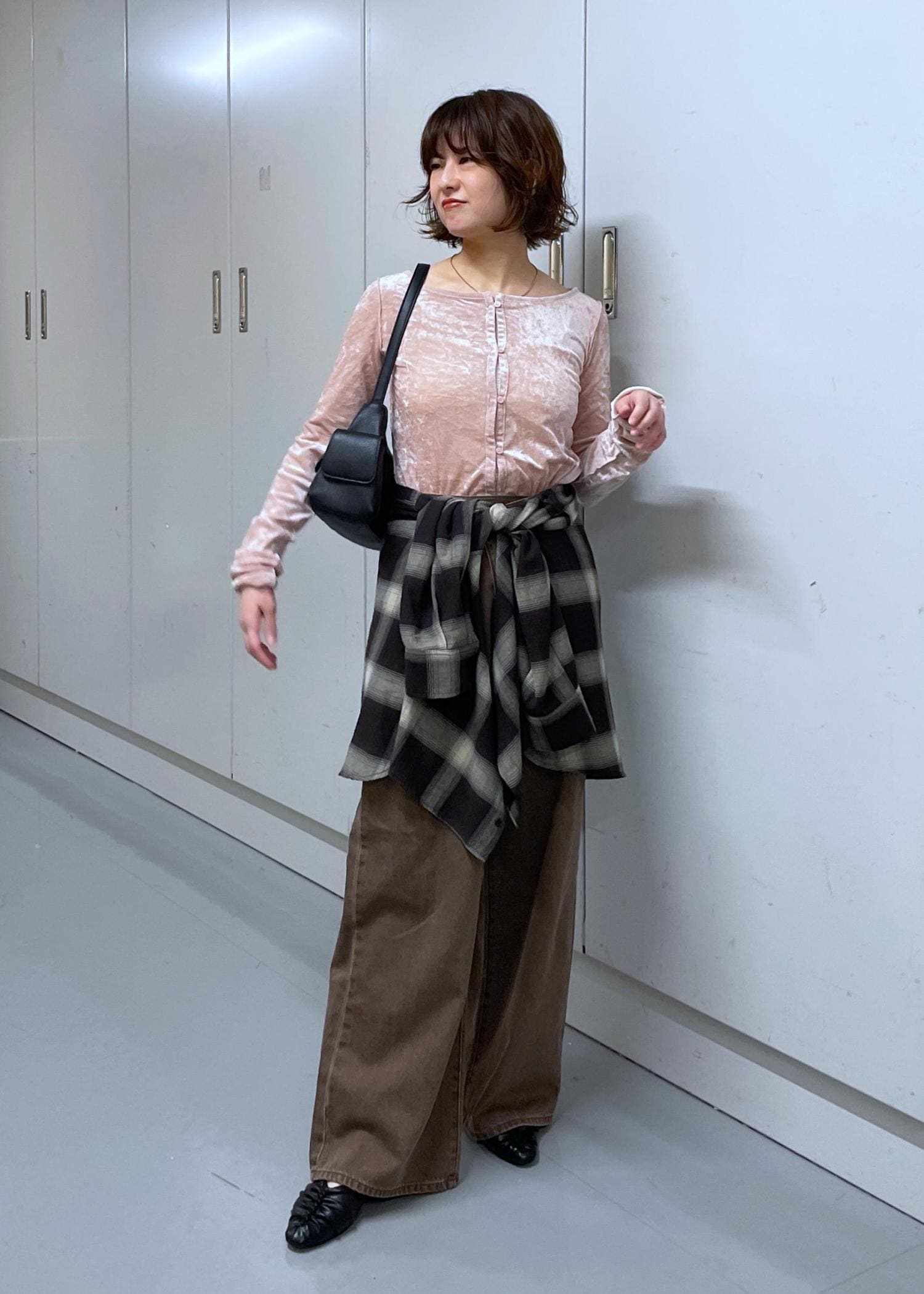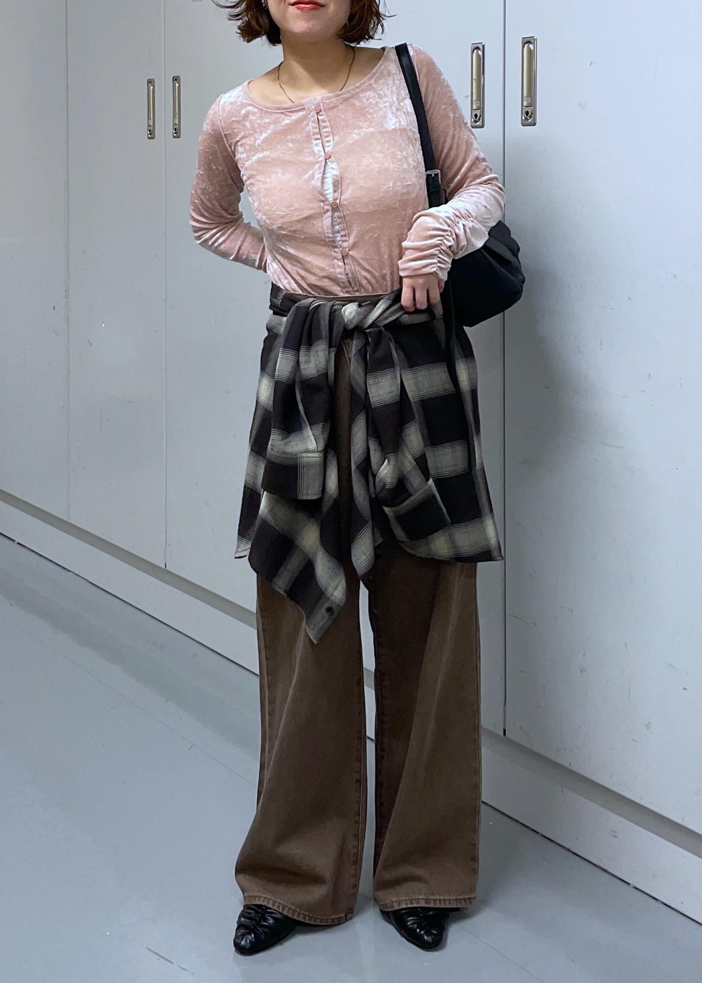 VIS【POLO BCS】VIS別注クロスベルトストレートワイドデニムブラウン / S¥9,900レビュー身長156㎝で着丈は足の甲に少し掛かるくらいです。