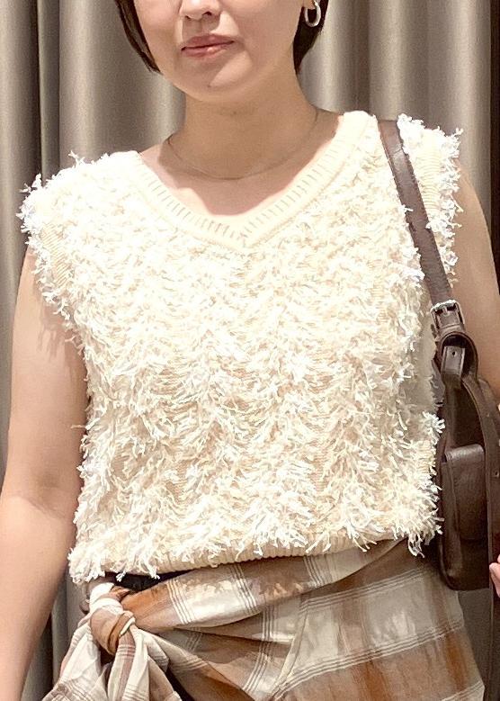 VIS【2WAY】フリンジニットベストキナリ / F¥5,929レビューフリンジがアクセントになる主役級のニットベストです!腕を出して1枚着としても、Tシャツなどのレイヤードとしてもおすすめです!Vネックでもクルーネックでも着れる前後2WAY仕様です!