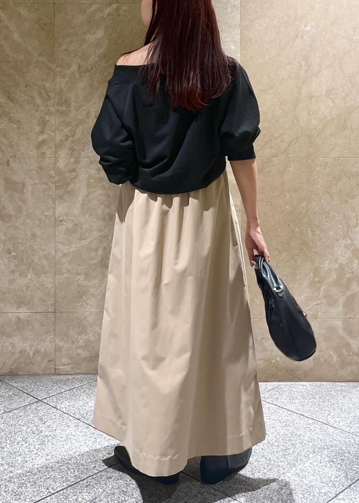 ウエストのたっぷりギャザーがふんわりと女性らしいシルエットを作ってくれ、でもボリュームが出過ぎることもないため、腰回りの体型カバーをしつつも、すっきりと着用できました。 -