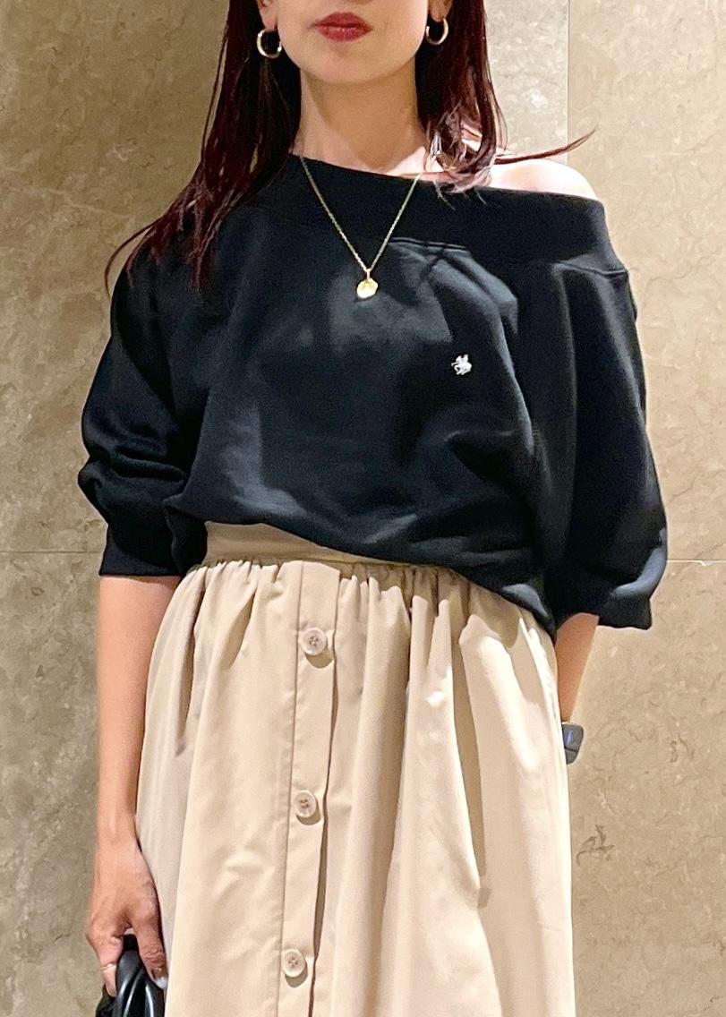 首元に抜け感が作れるため、カジュアルなアイテムでも女っぽさが出るのが嬉しい、、!大人のスウェットコーデに持ってこい◎ -