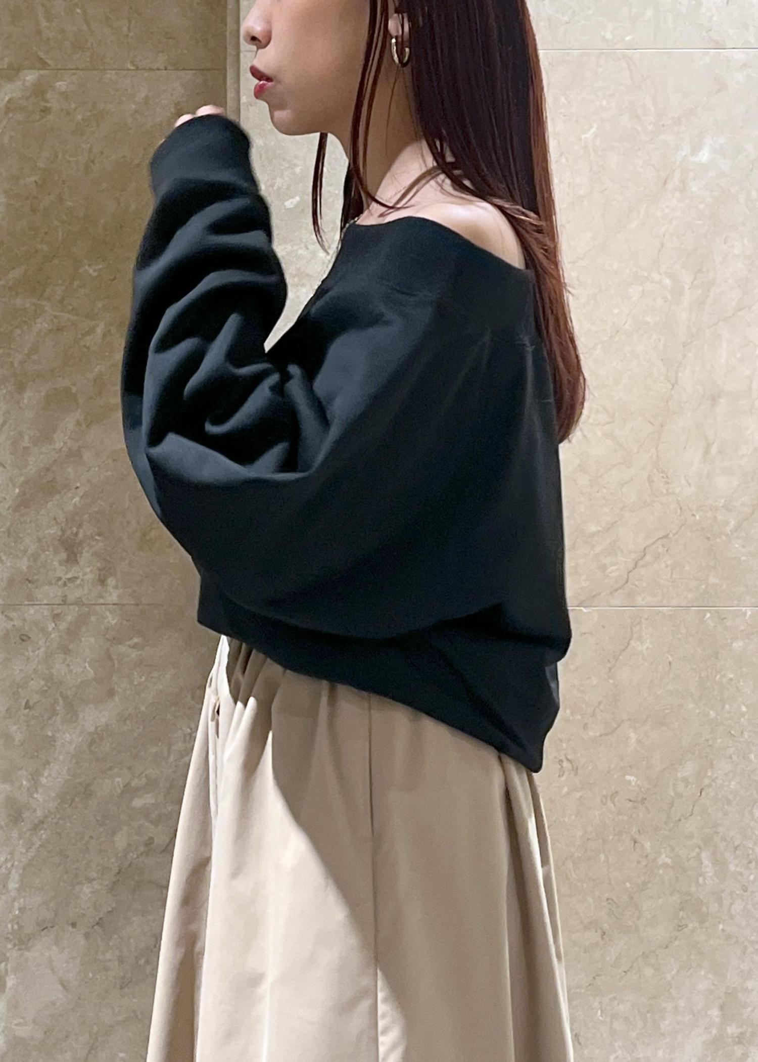 ほどよい肌見せで抜け感を作れるオフショルスウェット。