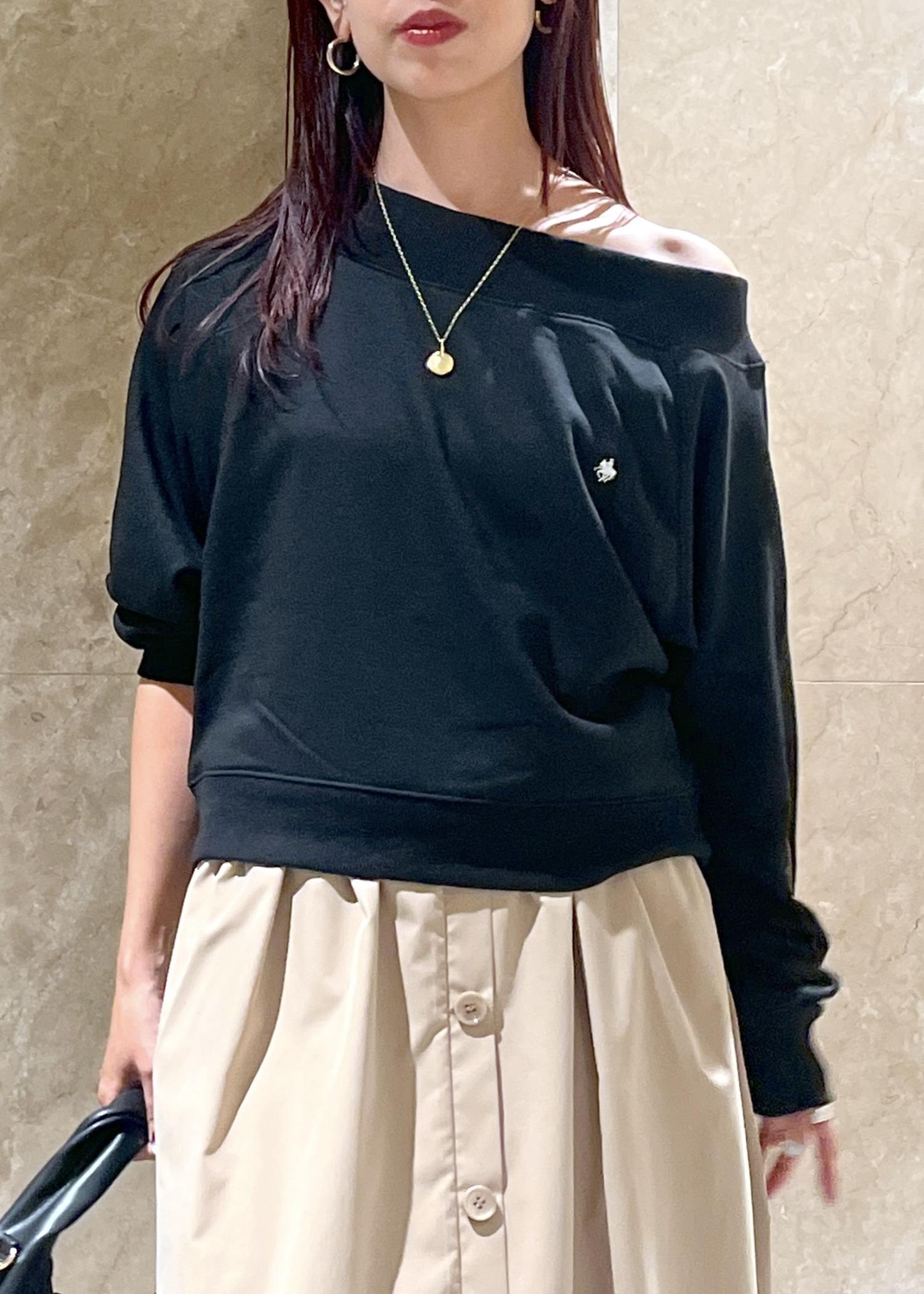 VIS【POLO BCS】VIS別注ワンショルダースウェットトップスブラック / F¥5,940レビュー身長158cm、着丈は腰あたりまで、ボトムスを選ばない長すぎず短すぎずのちょうど良い丈感。