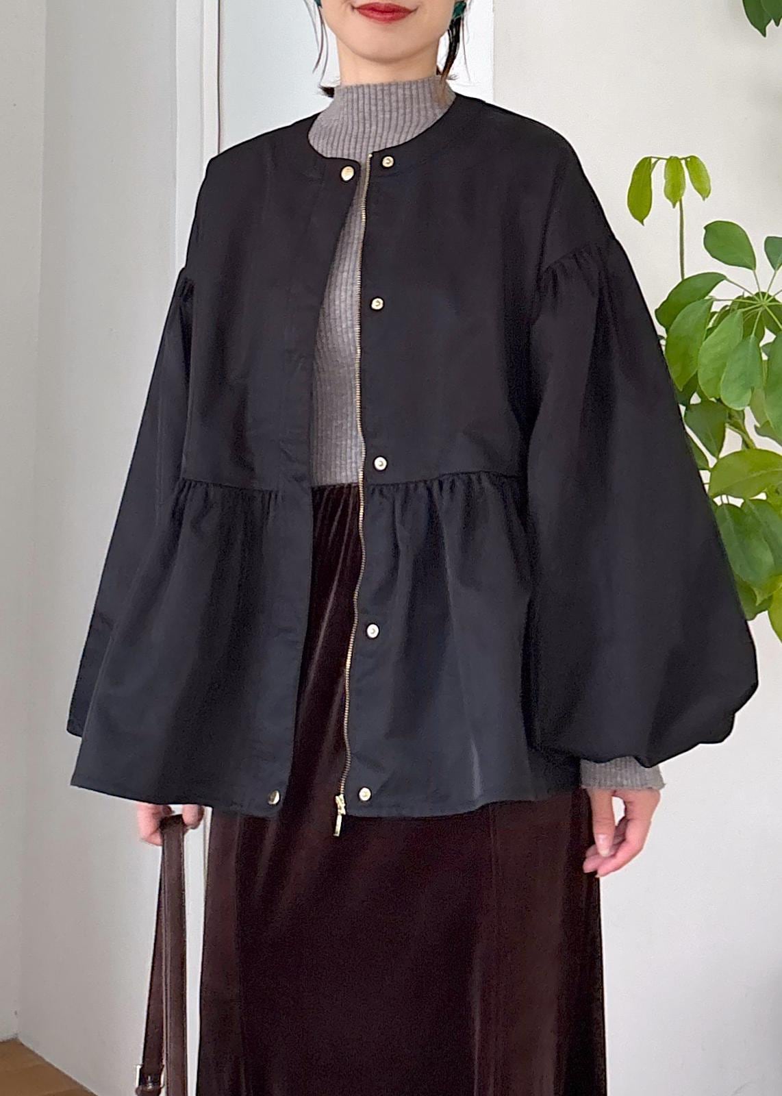 VIS【WEB限定】バルーンスリーブペプラムブルゾンブラック / F¥5,382レビューバルーンシルエットが今年らしい秋ブルゾン♪ほどよいハリがありつつ緩やかな軽めのブルゾンなので、今から秋とながく着回せます。胸下切り替えのバルーンと袖ボリュームデザインが女性らしい◎全体的にゆったりめ、着丈はお尻が半分近く隠れる長さでした。